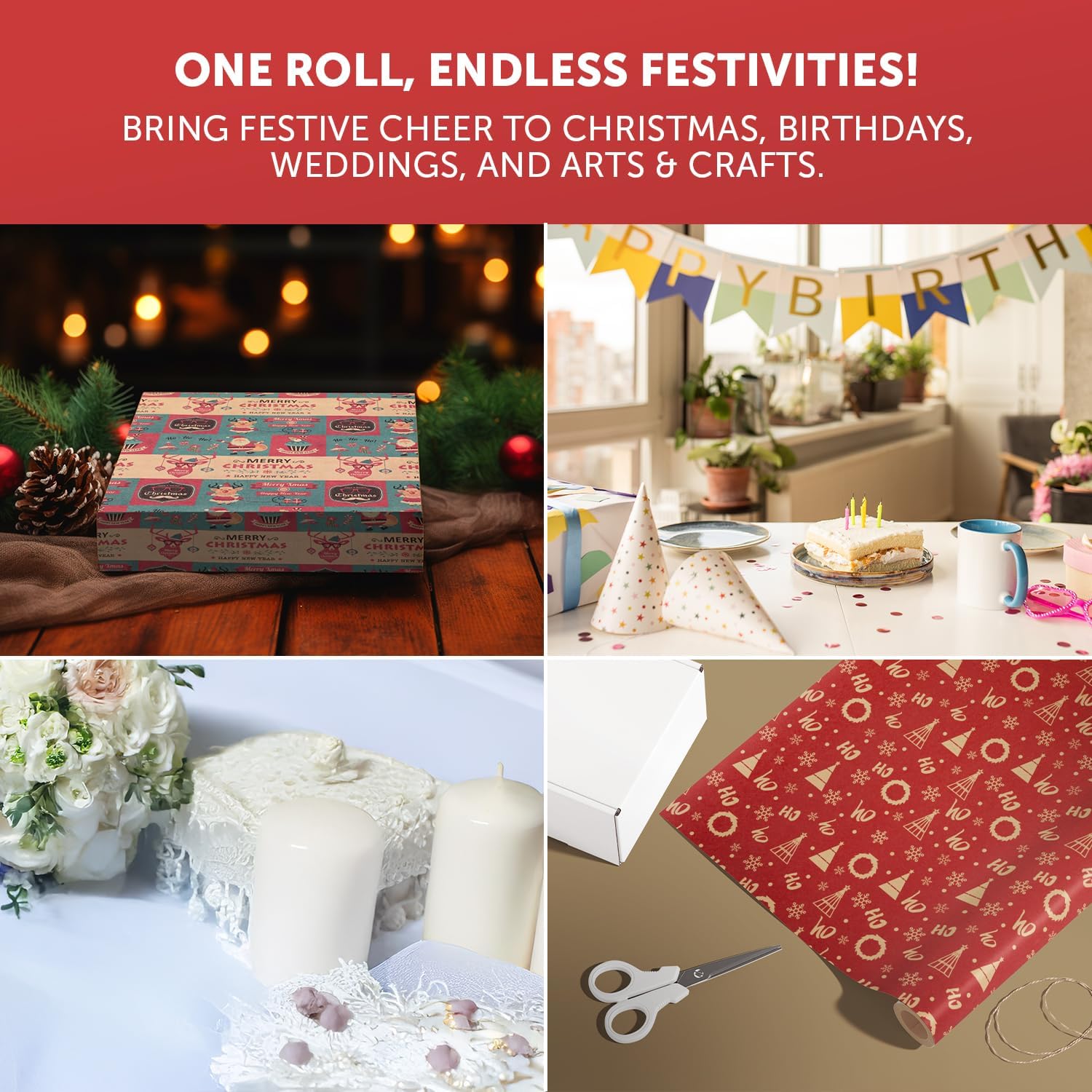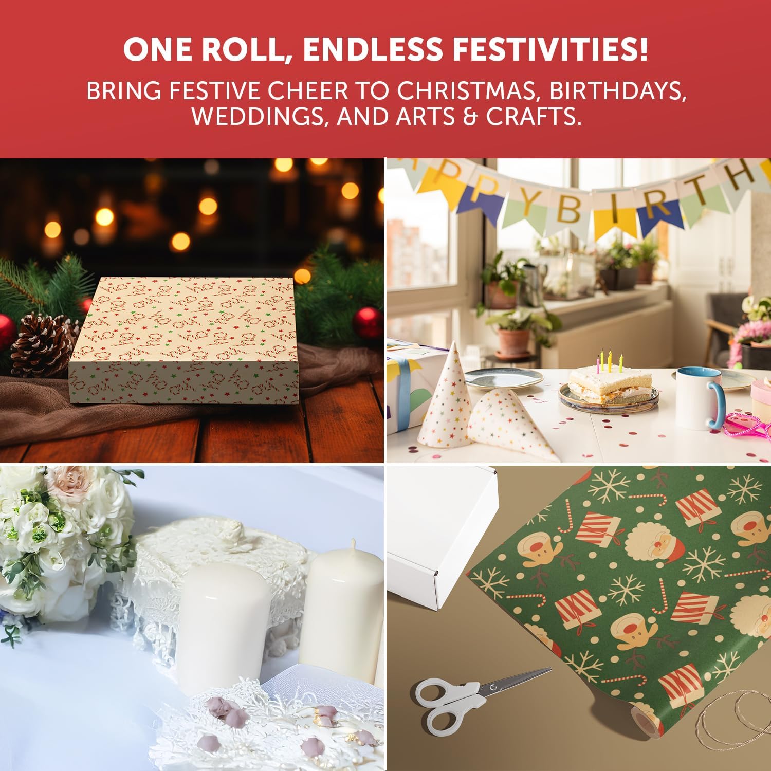 VERSATILE & FESTIVE – While perfect for Christmas, our wrapping paper’s charming designs are also great for other celebrations like birthdays, weddings, and baby showers. Plus, it’s ideal for holiday crafts—easy to draw on and customise to make every project feel extra magical!