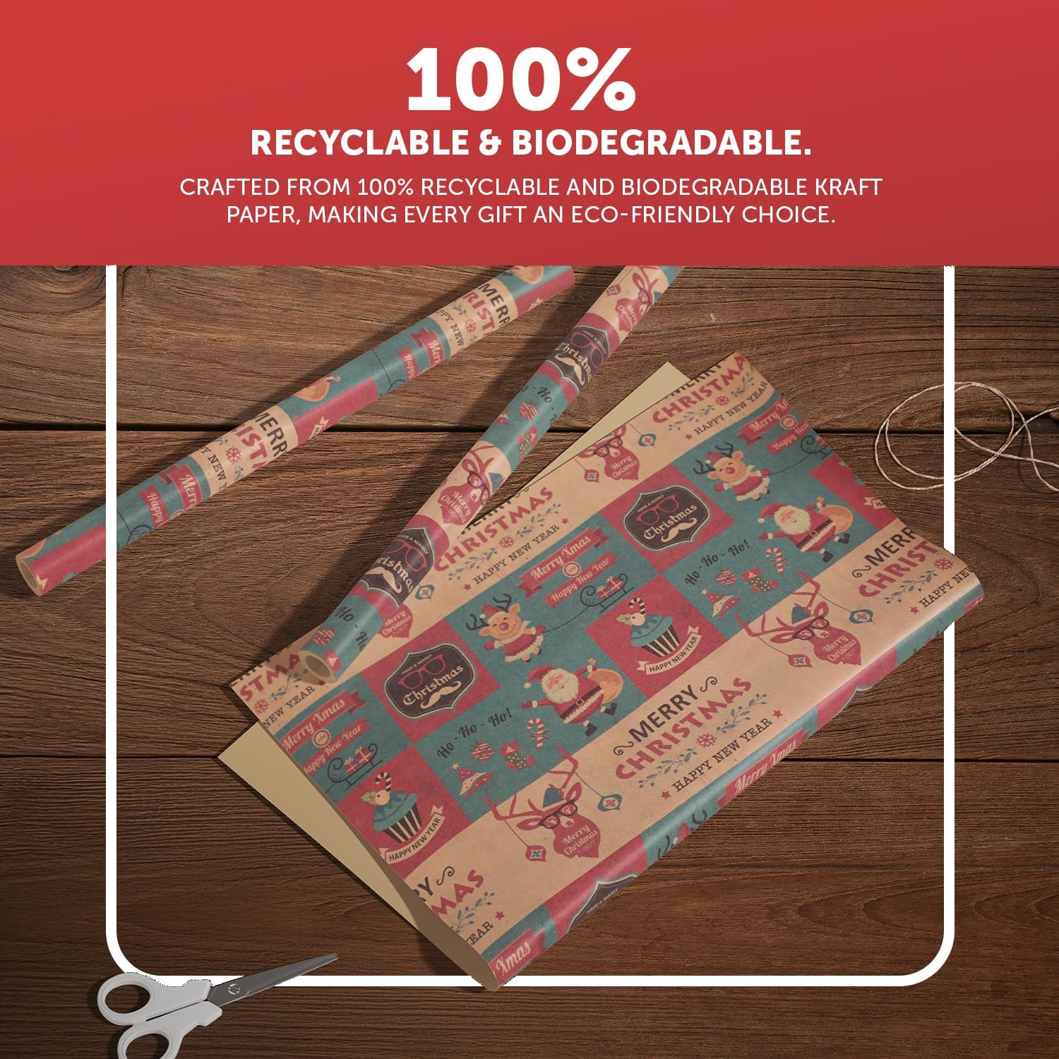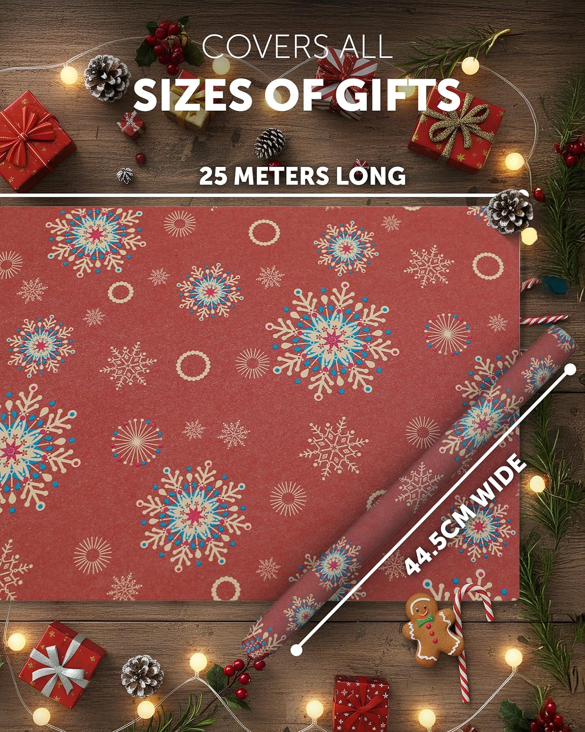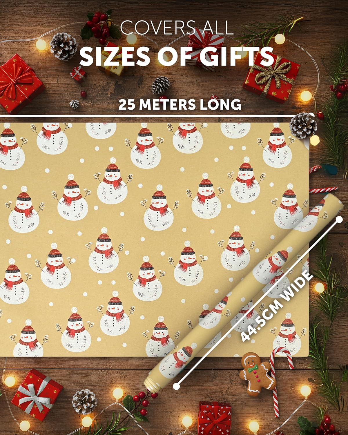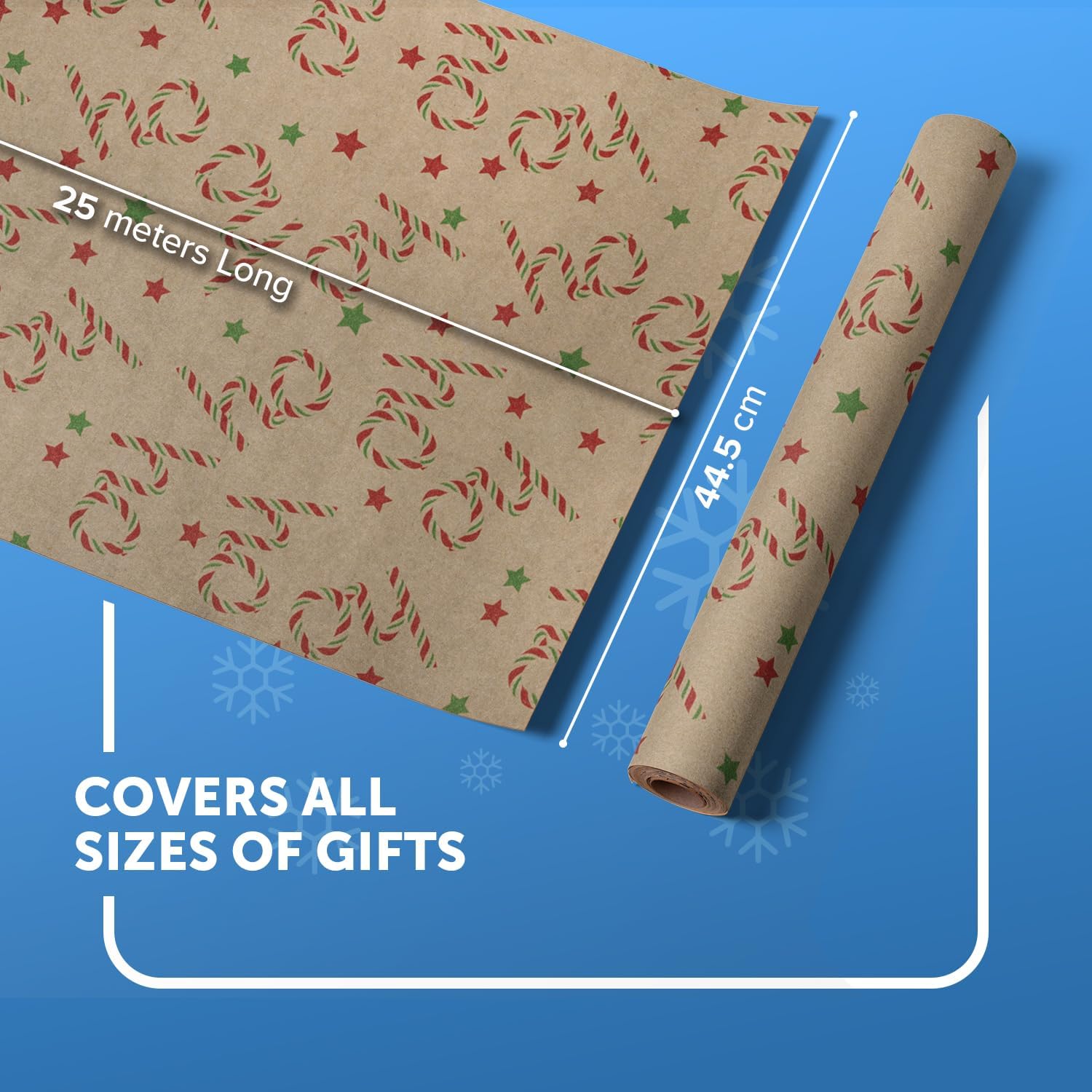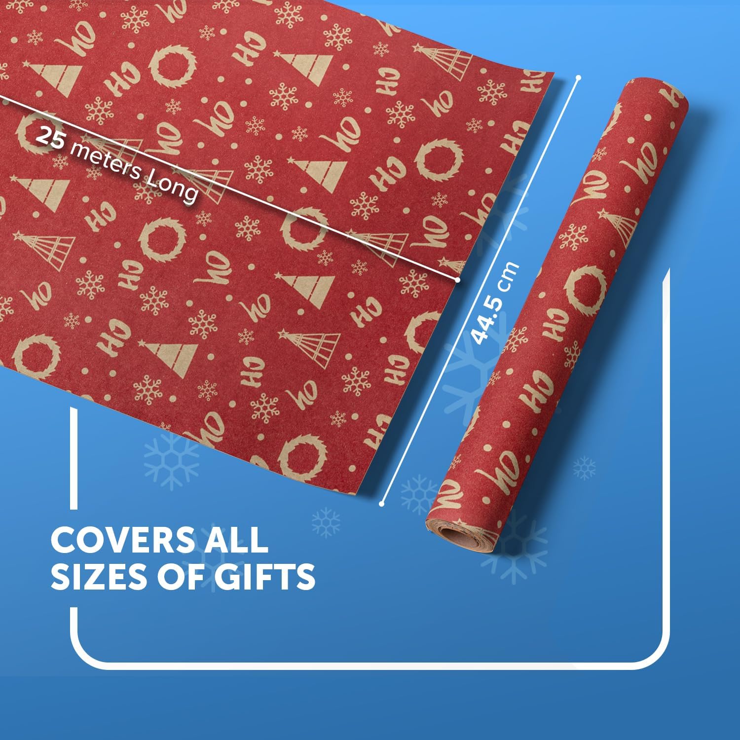 KRAFT HOLIDAY QUALITY – Crafted from durable recycled Kraft paper, our 44.5CM x 25M rolls boast a sturdy 100gsm thickness. Strong enough to handle the hustle and bustle of the season, it keeps your gifts protected whether placed under the tree or sent off to loved ones near and far.
