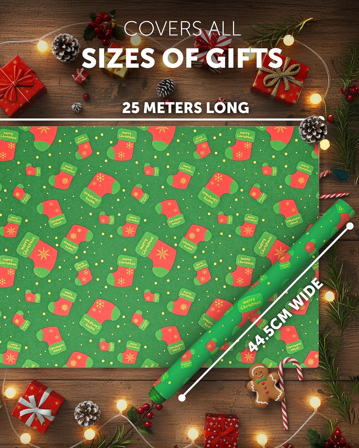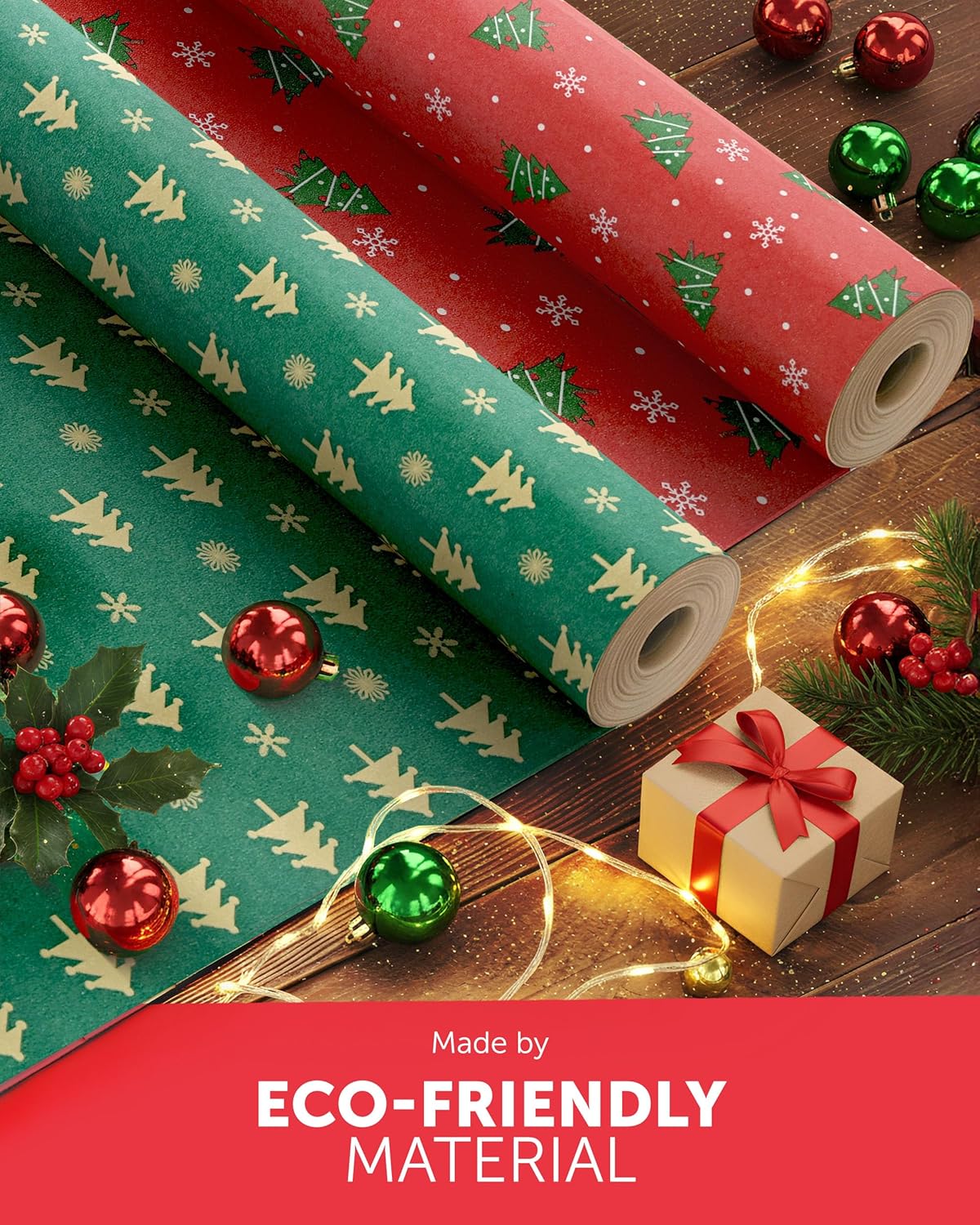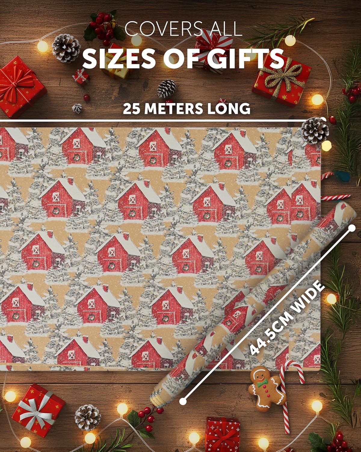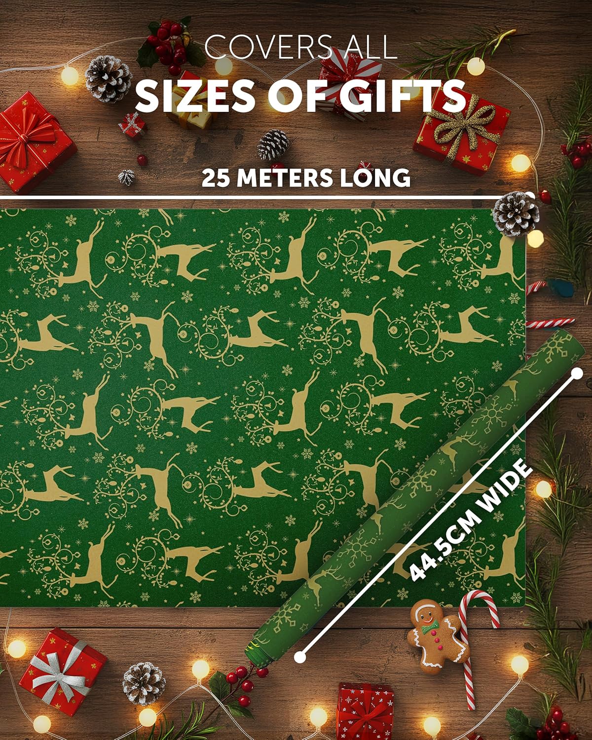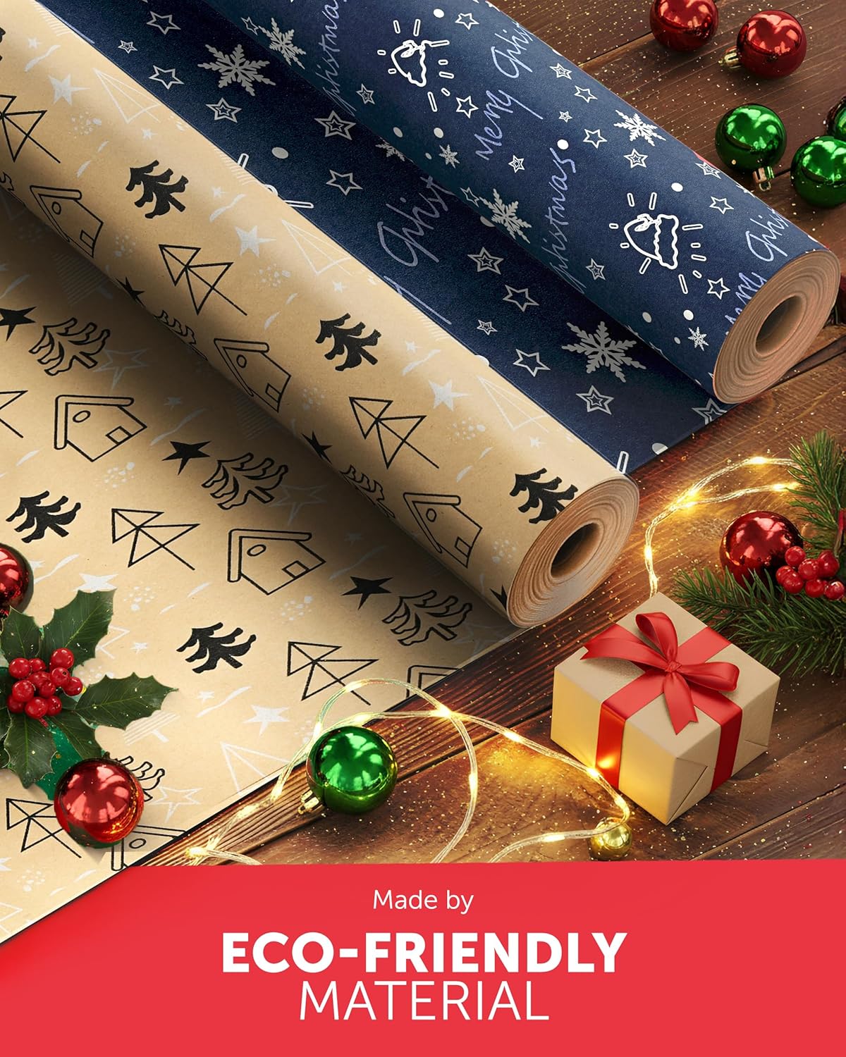 KRAFT HOLIDAY QUALITY – Crafted from durable recycled Kraft paper, our 44.5CM x 25M rolls boast a sturdy 100gsm thickness. Strong enough to handle the hustle and bustle of the season, it keeps your gifts protected whether placed under the tree or sent off to loved ones near and far.