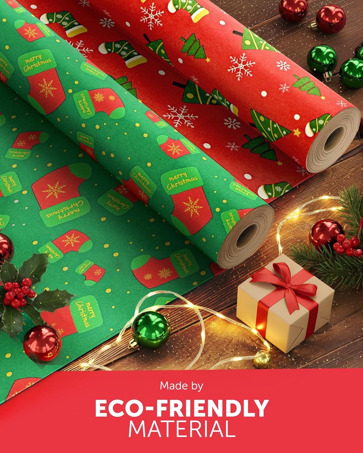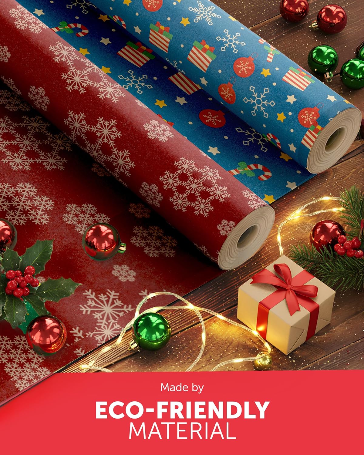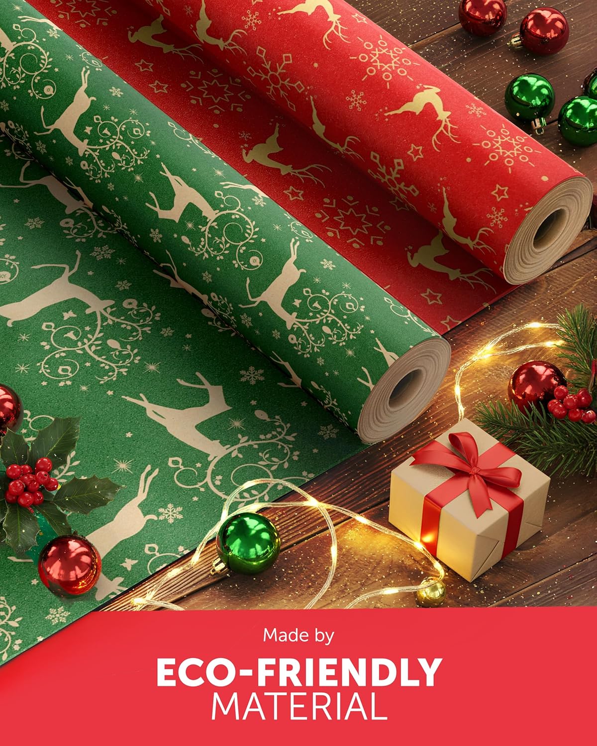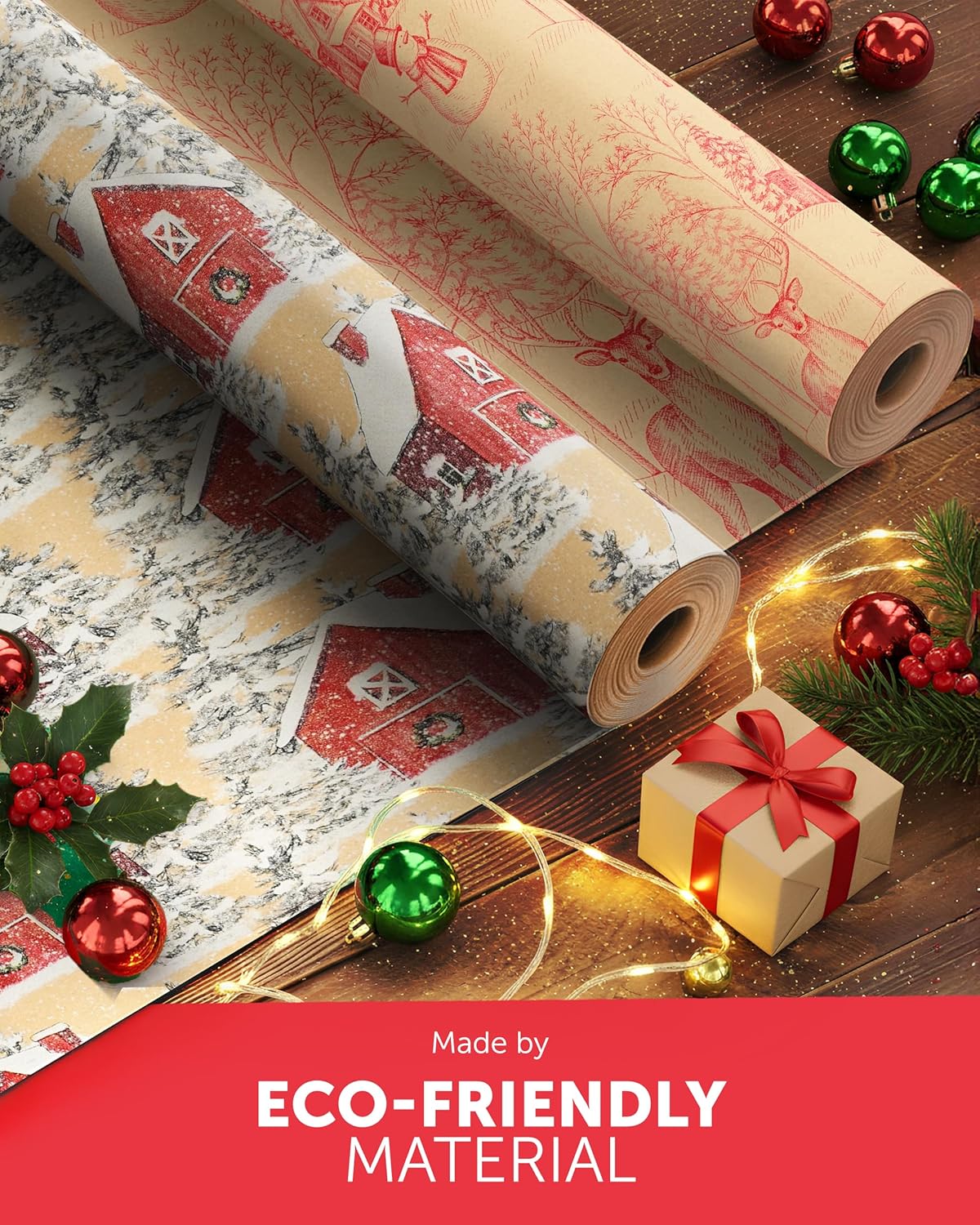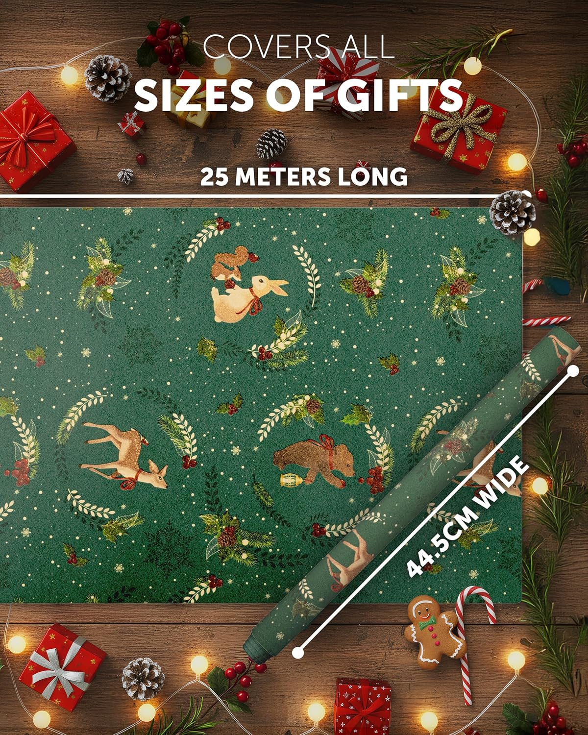 KRAFT HOLIDAY QUALITY – Crafted from durable recycled Kraft paper, our 44.5CM x 25M rolls boast a sturdy 100gsm thickness. Strong enough to handle the hustle and bustle of the season, it keeps your gifts protected whether placed under the tree or sent off to loved ones near and far.