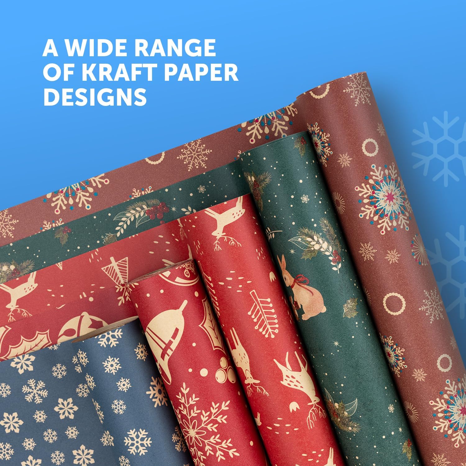 BEAUTIFUL CHRISTMAS DESIGNS – Choose from 15 joyful designs, including Nutcracker, Reindeer, Santa, Snowflake, and more! Whether you're going for classic stripes or playful holiday characters, Kraft & Co’s unique designs will bring your Christmas wrapping to life and spread holiday cheer.