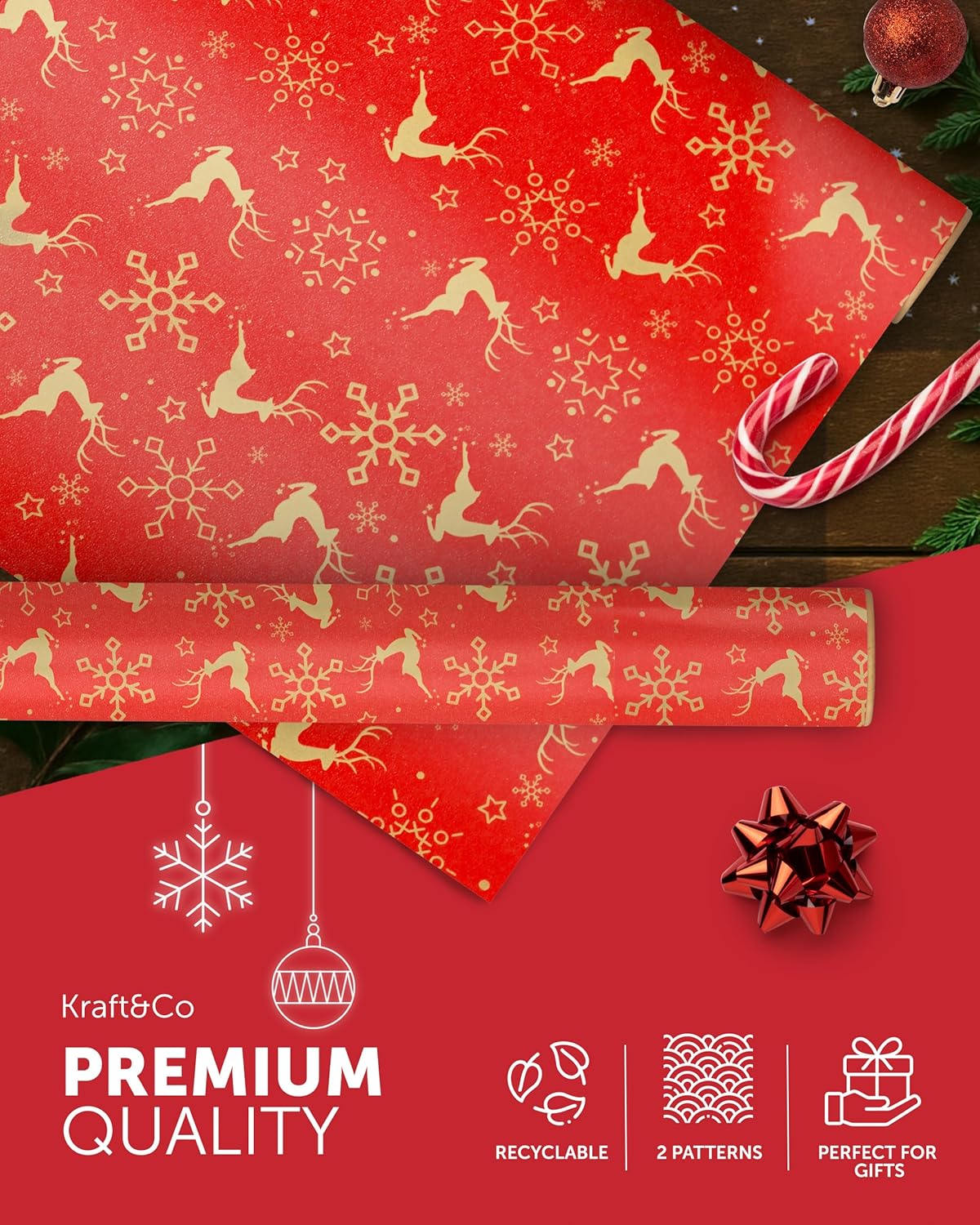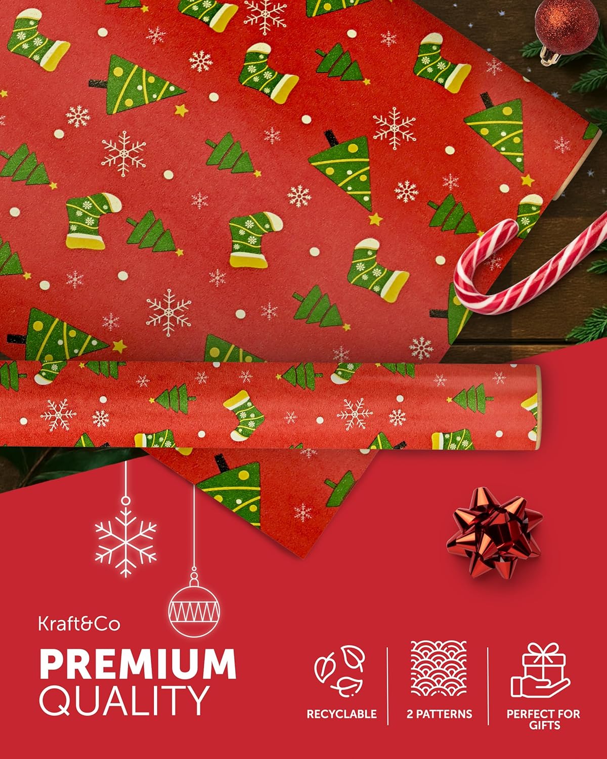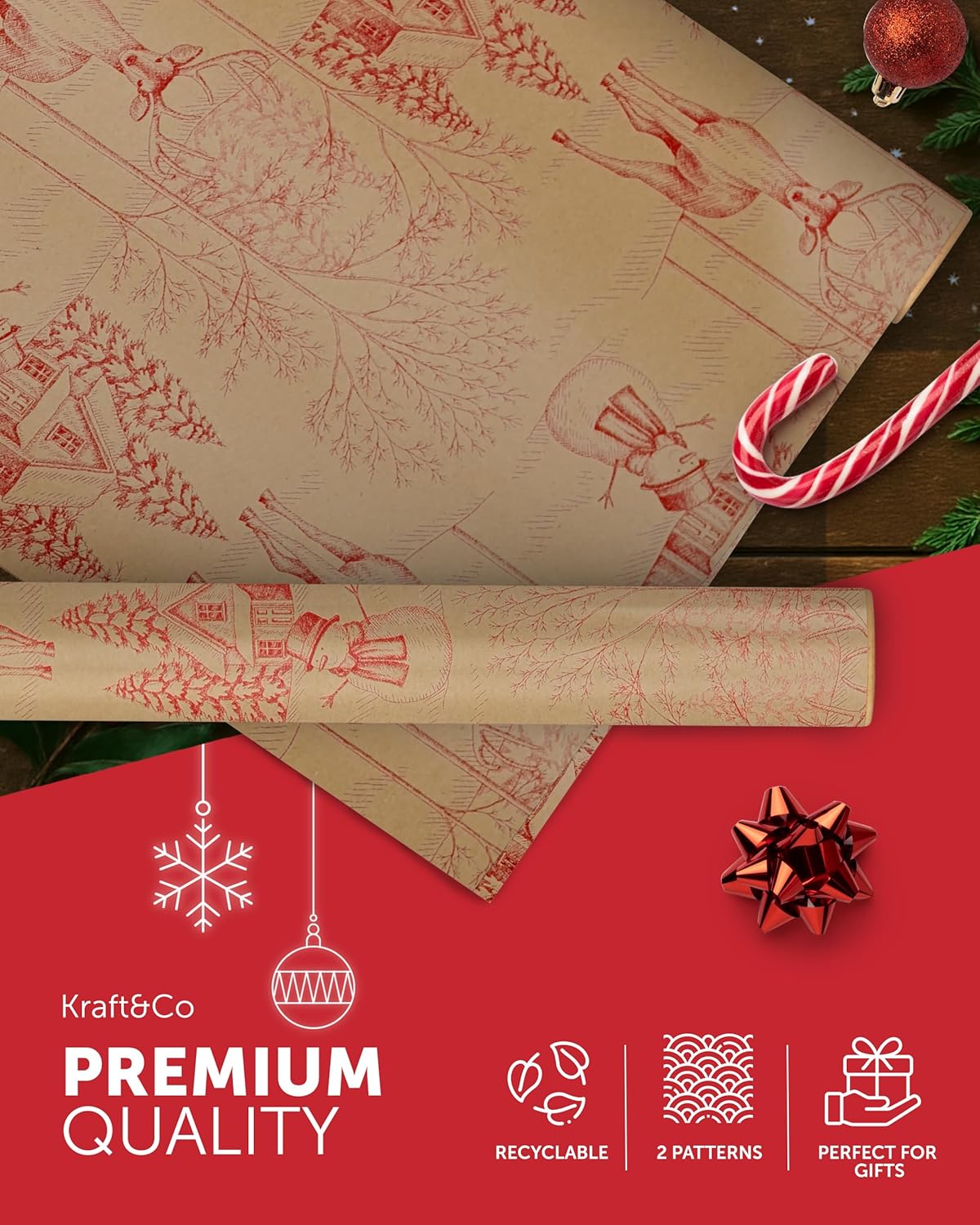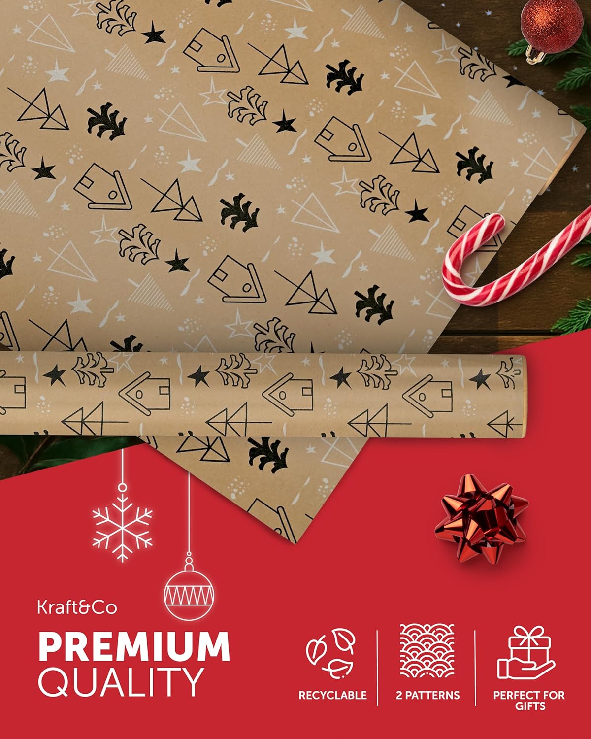 FESTIVE GIFT WRAP – Unwrap the magic of Christmas with our charming Kraft & Co wrapping paper! With nostalgic, homemade designs, these rolls capture the festive spirit and make gift-giving even more special. Wrap everything from stocking stuffers to large presents with our high-quality, festive paper.
