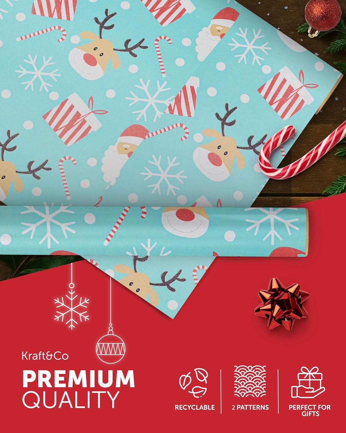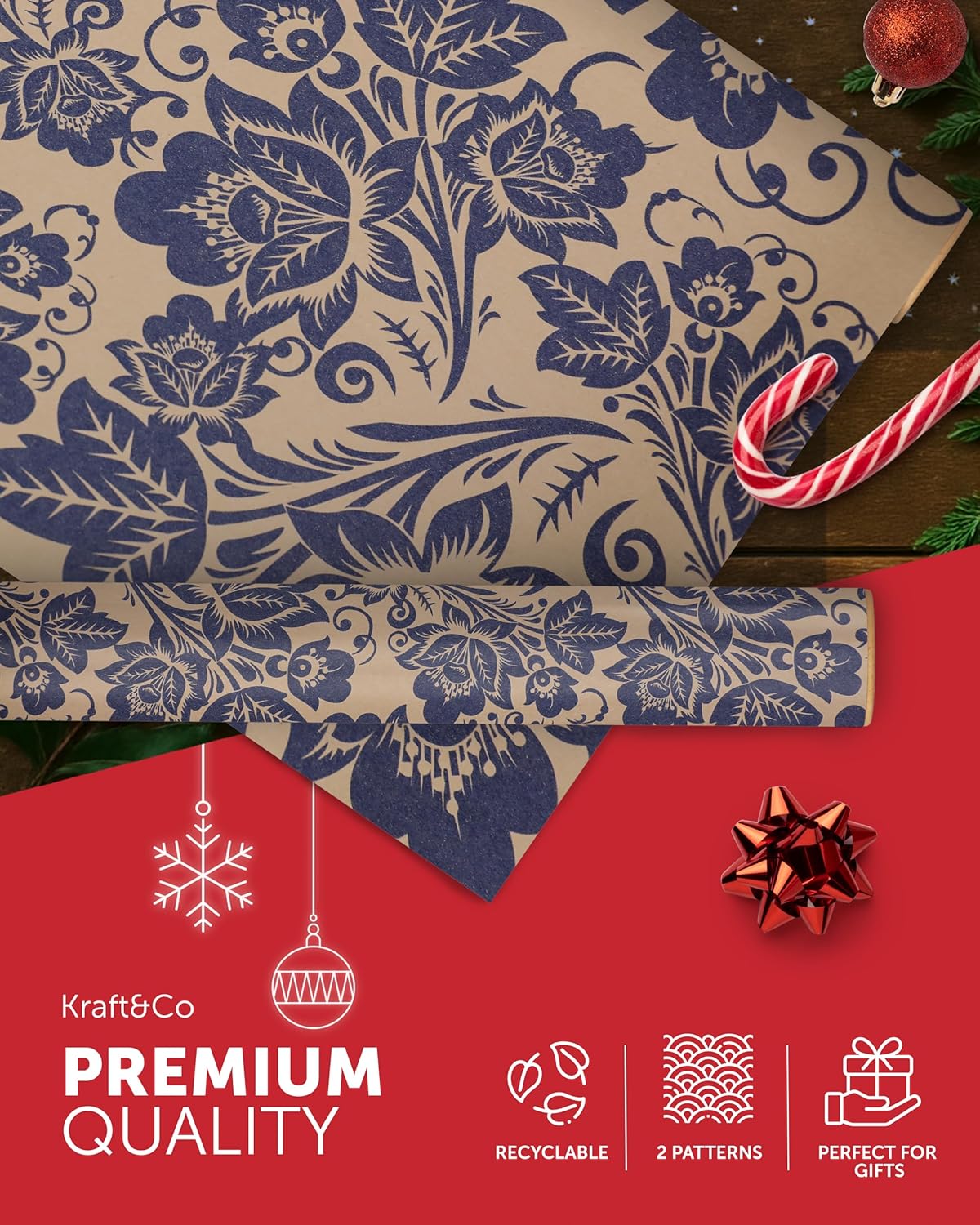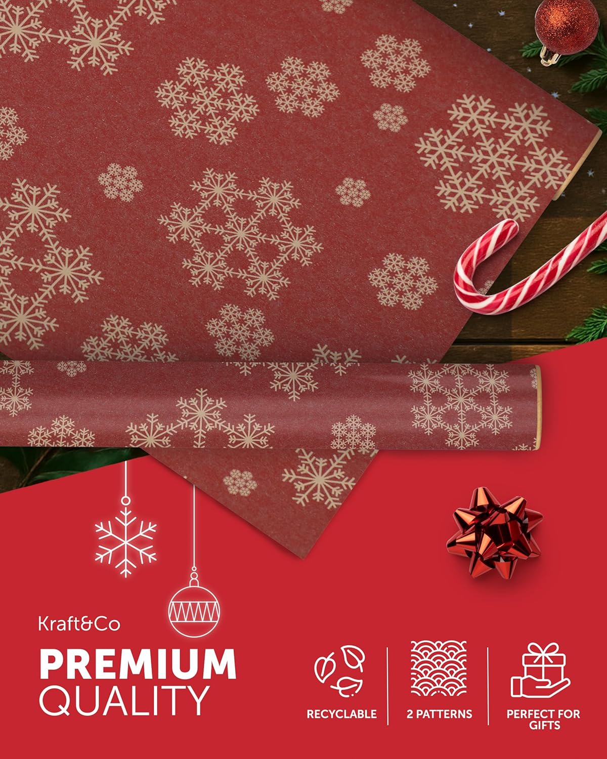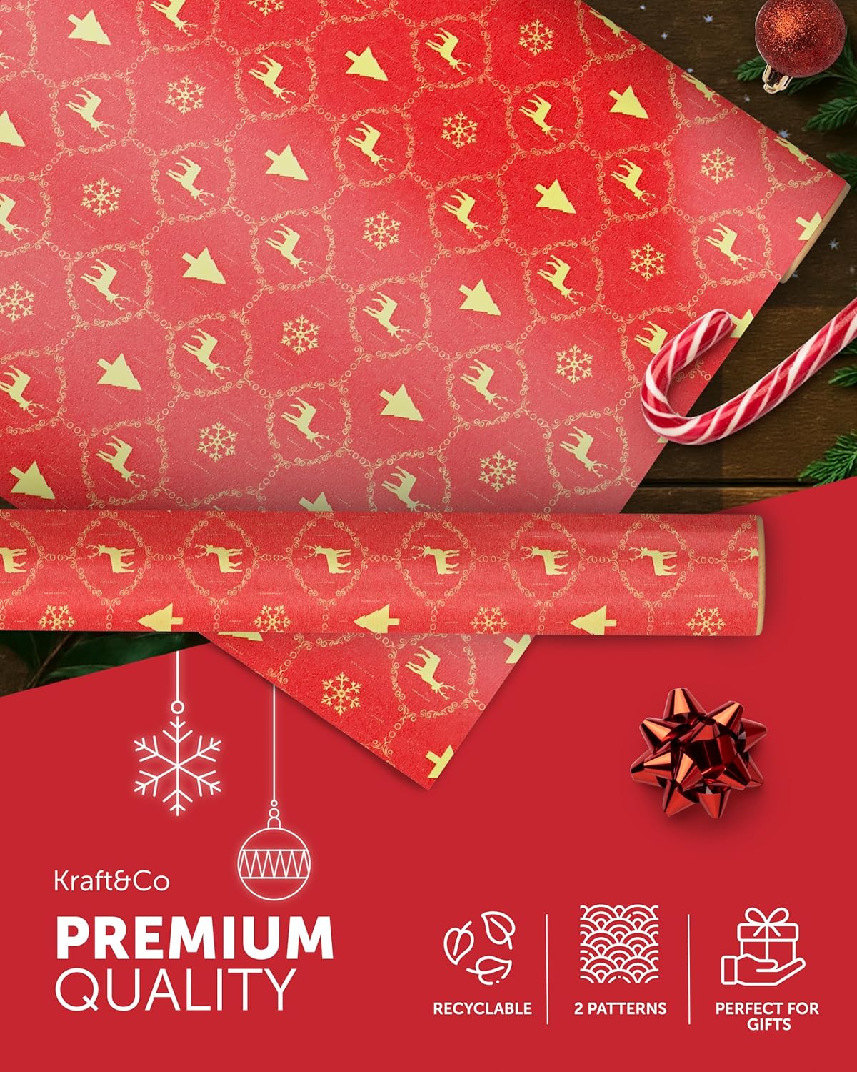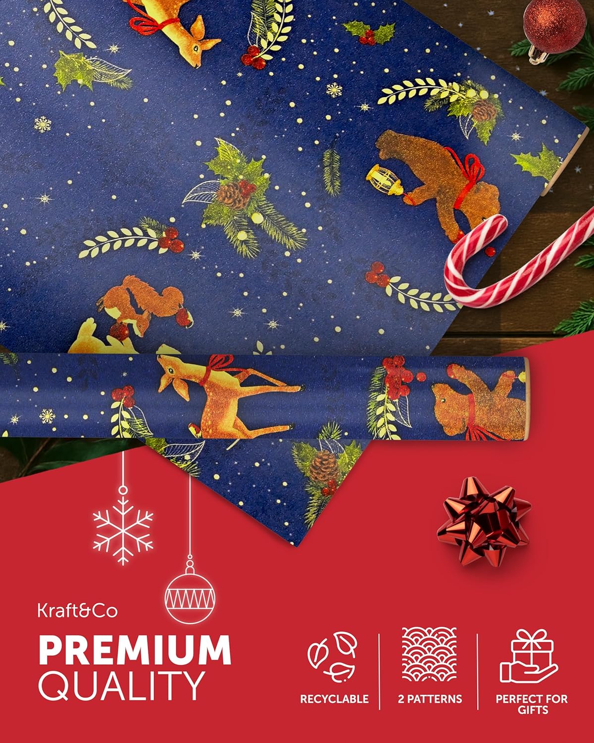 FESTIVE GIFT WRAP – Unwrap the magic of Christmas with our charming Kraft & Co wrapping paper! With nostalgic, homemade designs, these rolls capture the festive spirit and make gift-giving even more special. Wrap everything from stocking stuffers to large presents with our high-quality, festive paper.