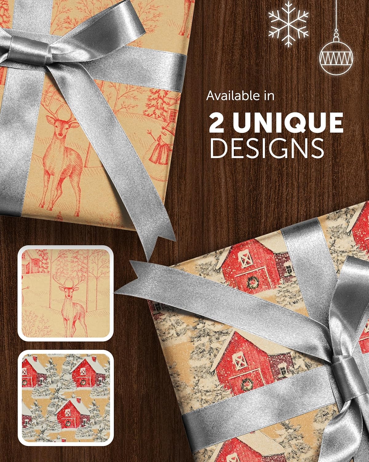CREASE-FREE MAGIC – Wrap your Christmas gifts with ease! Made from dense, high-quality Kraft paper, these rolls keep your presents looking pristine. Folds won’t leave creases easily, and the paper resists tearing, even with those tricky, odd-shaped gifts. No more holiday wrapping headaches!
