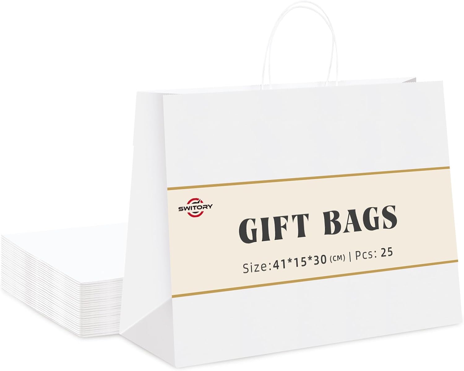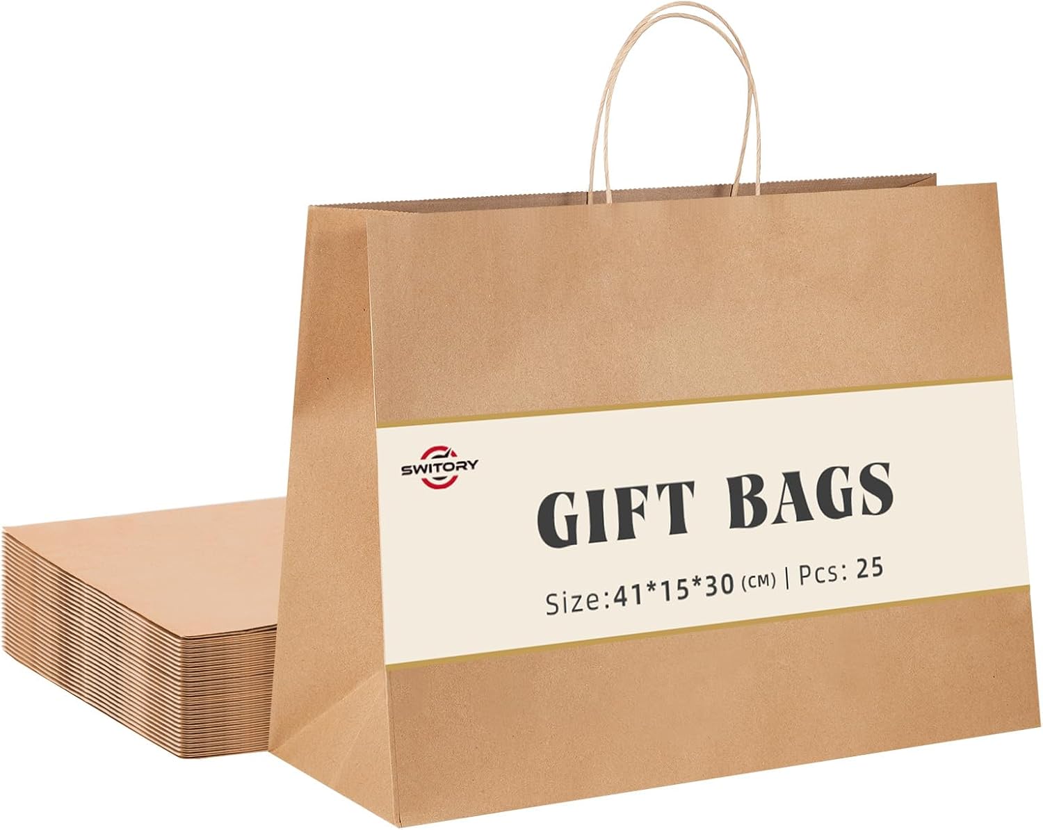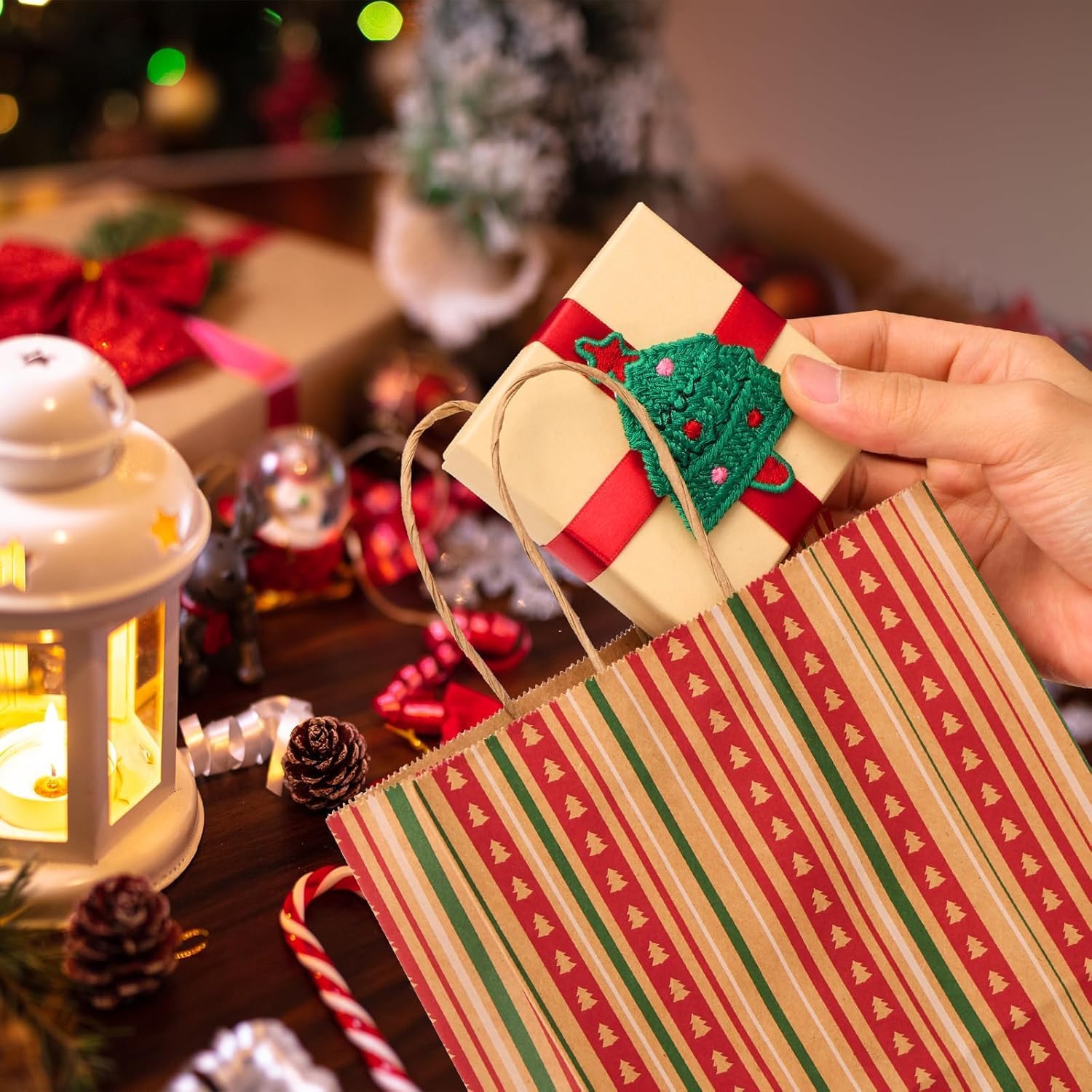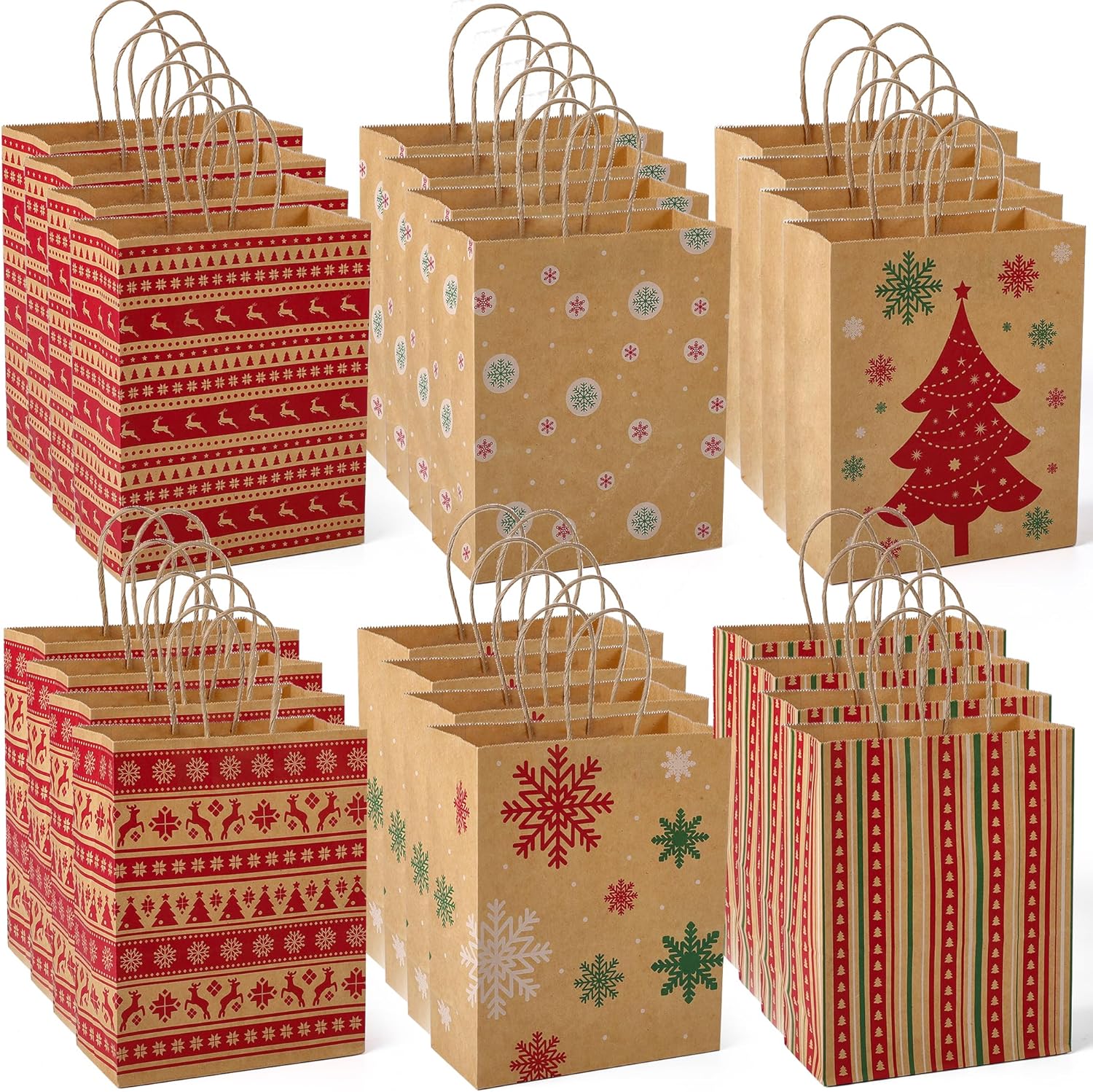 【Heavy Duty 120G Xmas gift bags】 - Made with 120gsm kraft paper, more thick than other paper gift bags. Handle design is easy to grip, you can rest assured that your gifts are safely wrapped in the bag. The reinforced bottom and perfectly glued handle provide extra support. Craft bags is sturdy enough to carry all kinds of your Christmas presents.