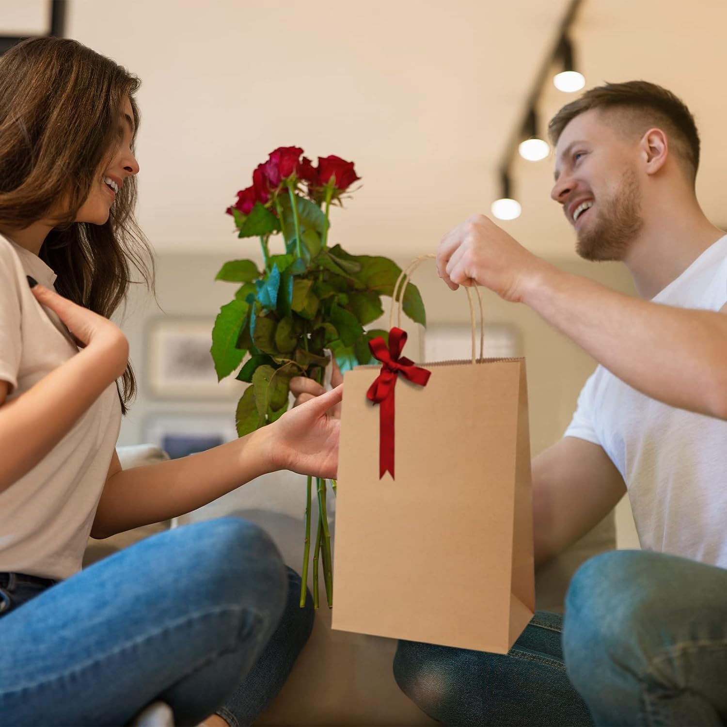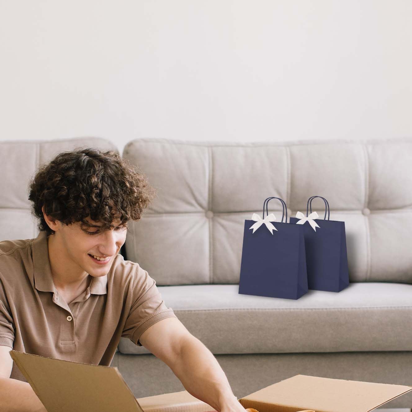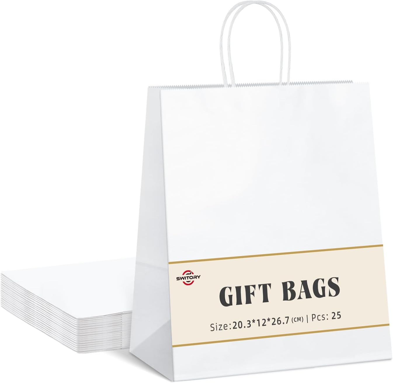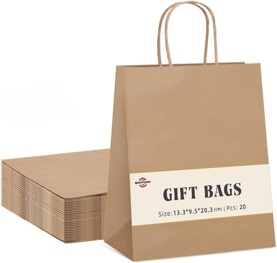 【Heavy Duty 120G Xmas gift bags】 - Made with 120gsm kraft paper, more thick than other paper gift bags. Handle design is easy to grip, you can rest assured that your gifts are safely wrapped in the bag. The reinforced bottom and perfectly glued handle provide extra support. Craft bags is sturdy enough to carry all kinds of your Christmas presents.