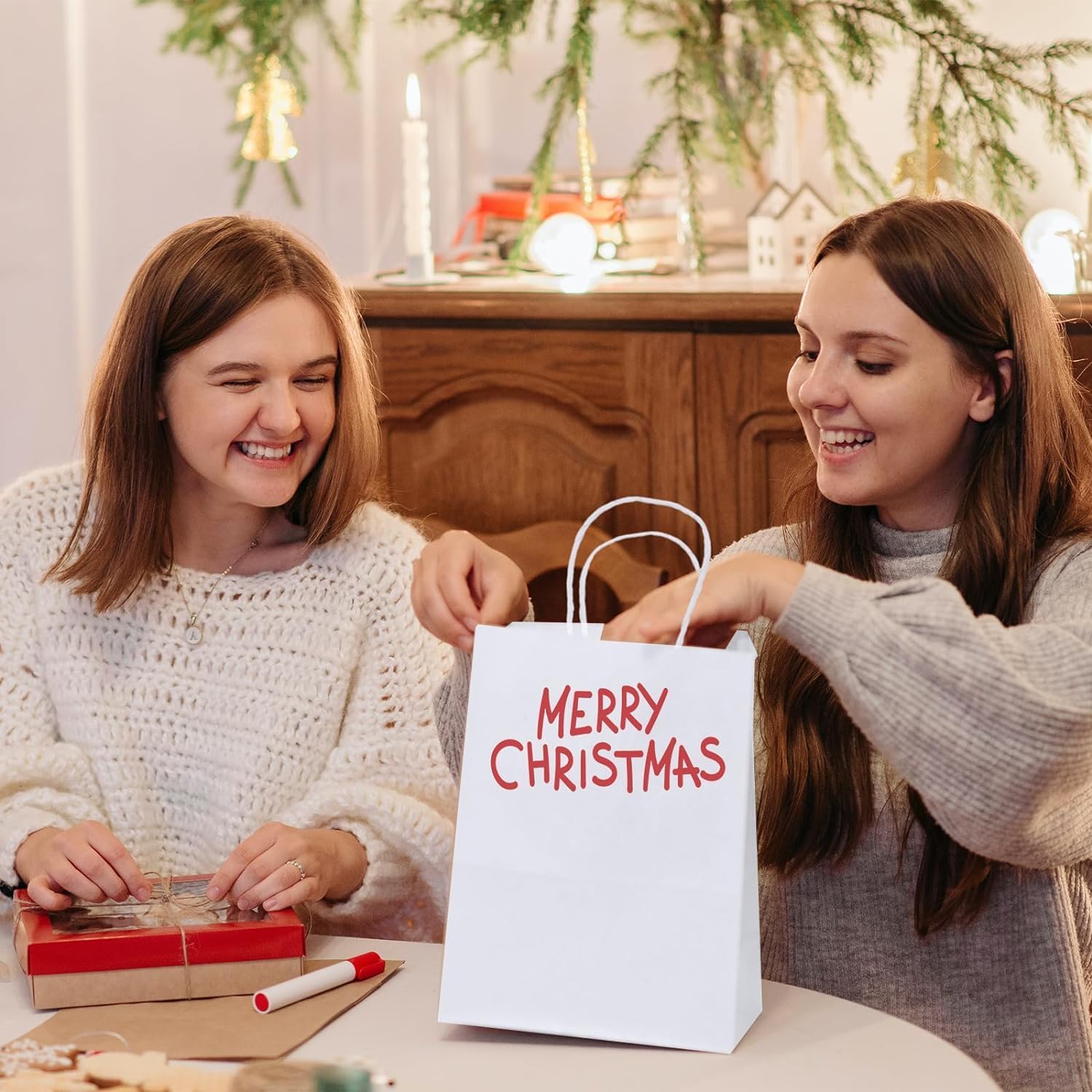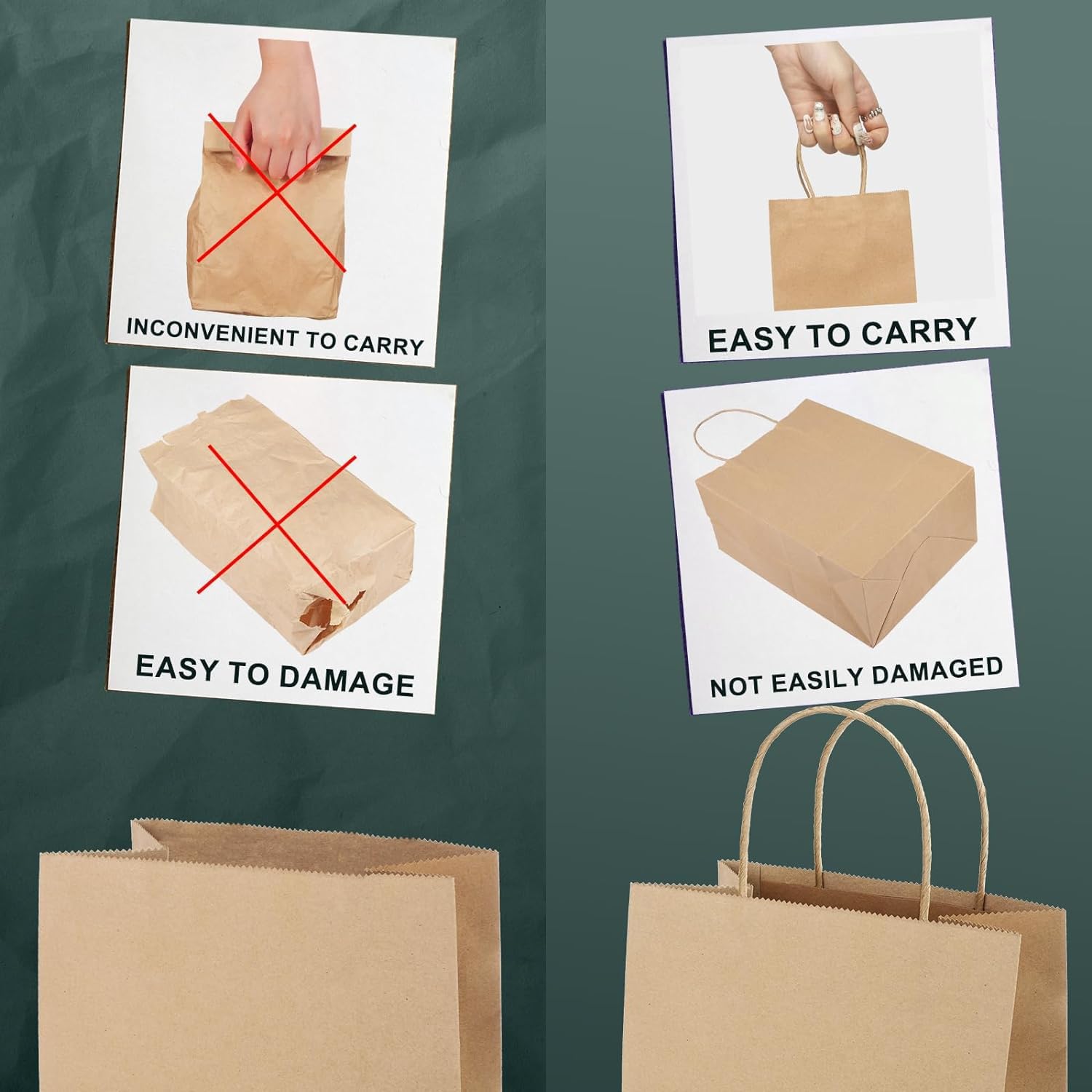 【Multifunctional paper Bags】 - These Xmas Kraft bags are suitable for many occasions, such as Christmas themed parties, New Year celebrations, Thanksgiving, birthdays, etc. They can also be used as a shopping bag for daily use, reusable and easy to carry. Brown Christmas paper bags perfect for Christmas gift wrap bags,party favors bags,treat bags,goodie bags,retail shopping bags.