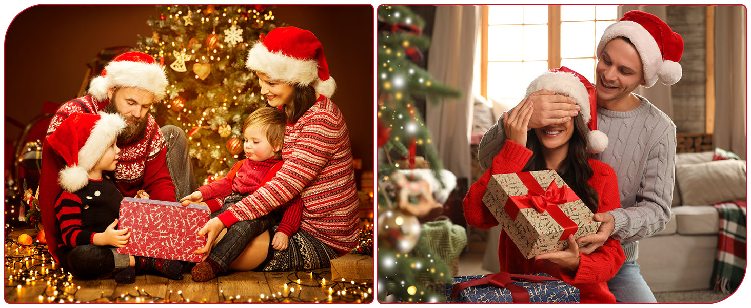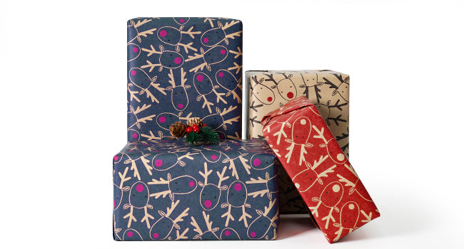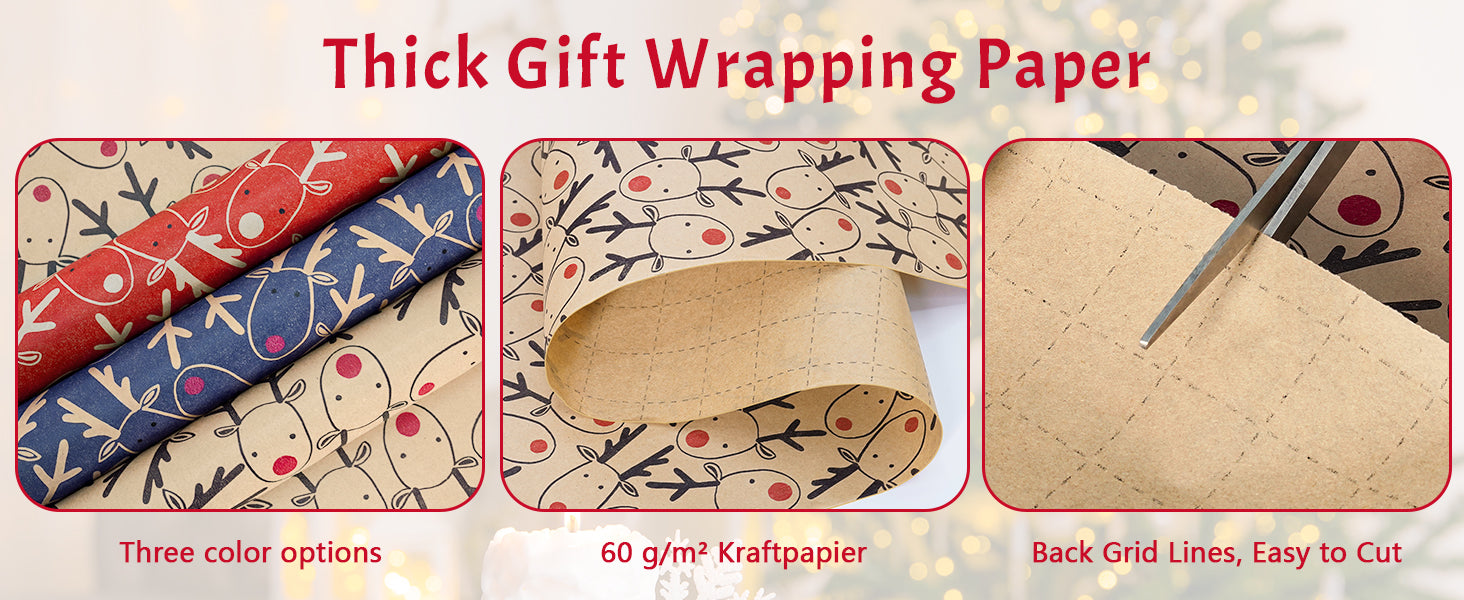 Classic Christmas Elements: These gift wrapping paper print with cute elk. Come with Three colors: brown, blue, and red, suitable for people of all ages. Classic Christmas elements are integrated to creating strong Christmas atmosphere. These wrapping paper can also be an ideal choice for other festivals.