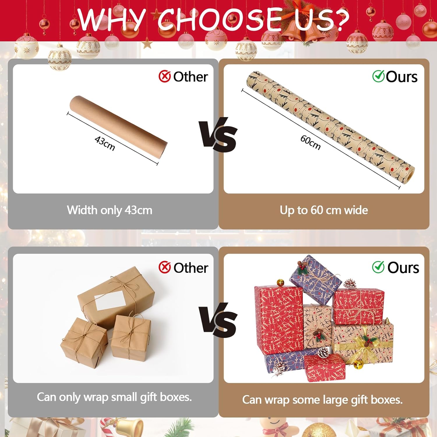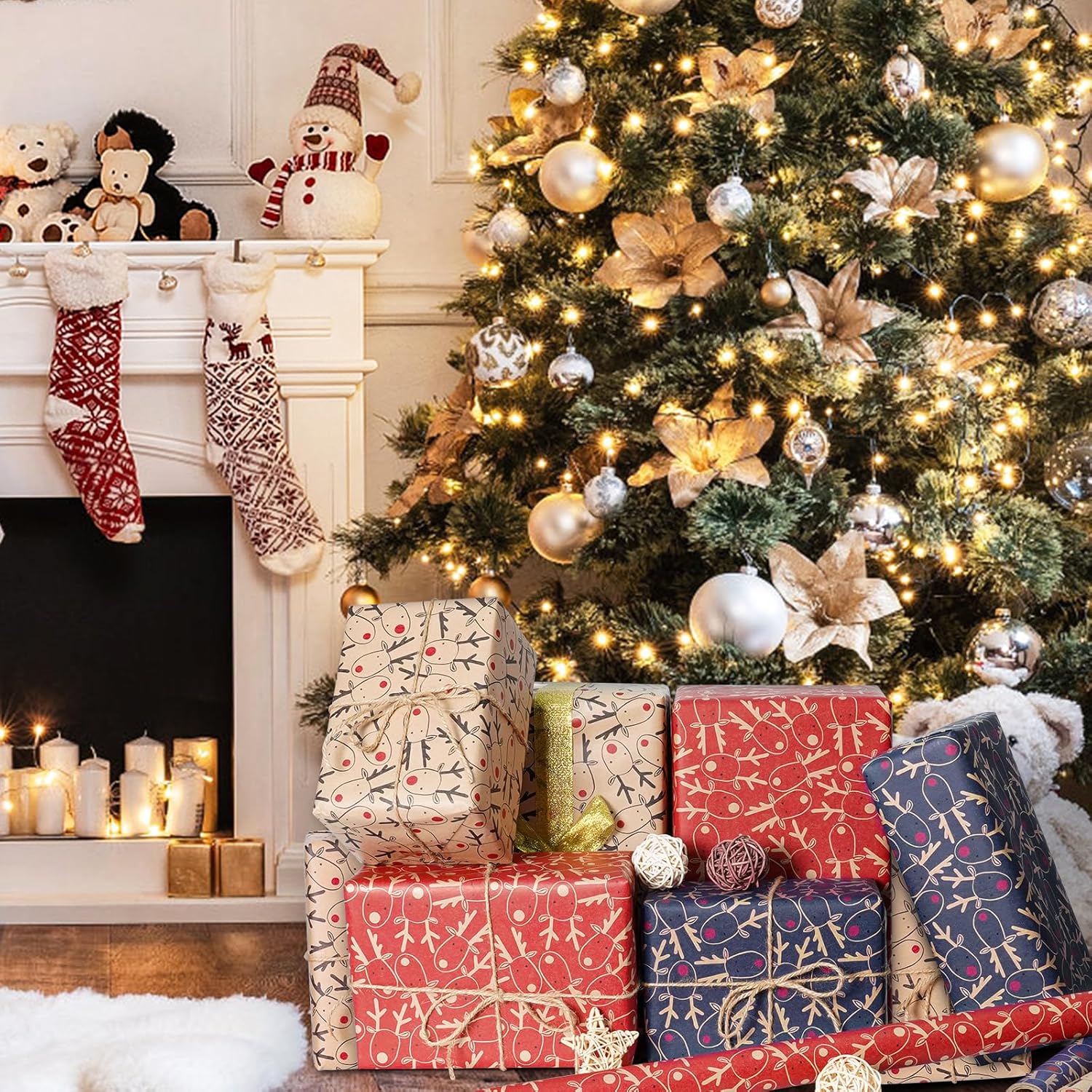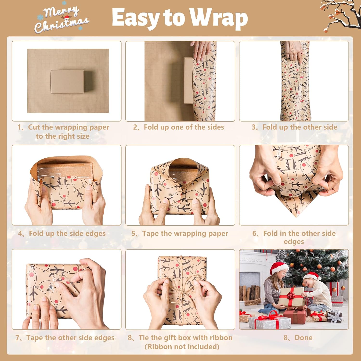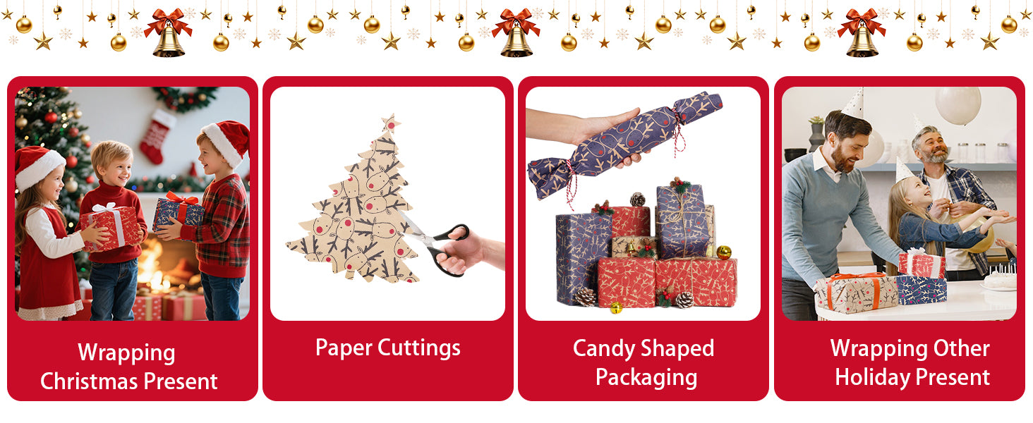 Kraft Paper & Recyclable: This packaging paper is made of quality kraft paper, sturdy and tear-resistant, not easily damaged. Also, it’s recyclable. Bright colors and beautiful elk design will be an eye-catcher at the Christmas party