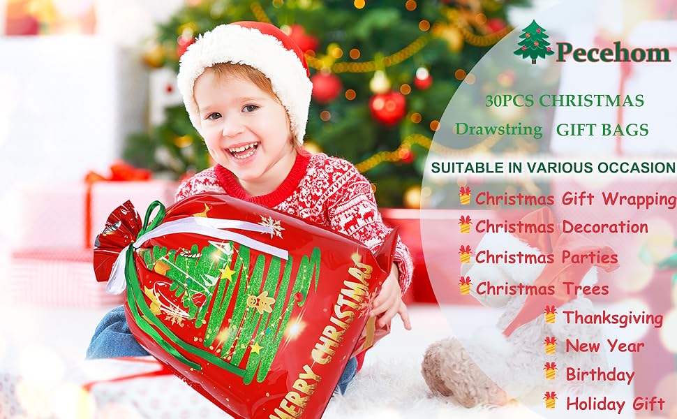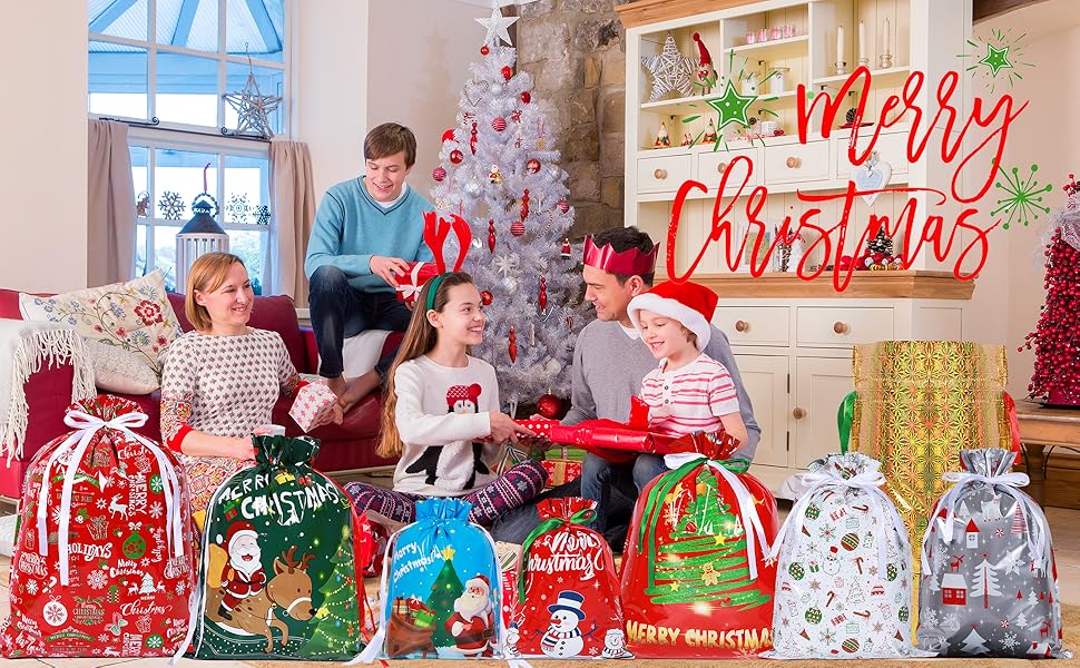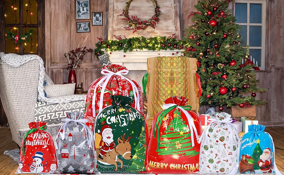 【Christmas Surprise】: The christmas gift bags multipack are the best choice for Christmas gift packaging, Christmas tree decoration, to create a merry Christmas atmosphere. They're great for loading books, clothes, cookies, and anything else you might want. Use the drawstring gift bag to surprise your friends because they have no idea what gift is inside.
