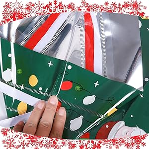 【High Quality Material】: The christmas bags for presents are made of high quality OPP packaging foil material. Sturdy structure, heavy load, not easy to break, sturdy. It can be used as a storage bag and can be reused many times. Can directly touch candies, biscuits, etc.