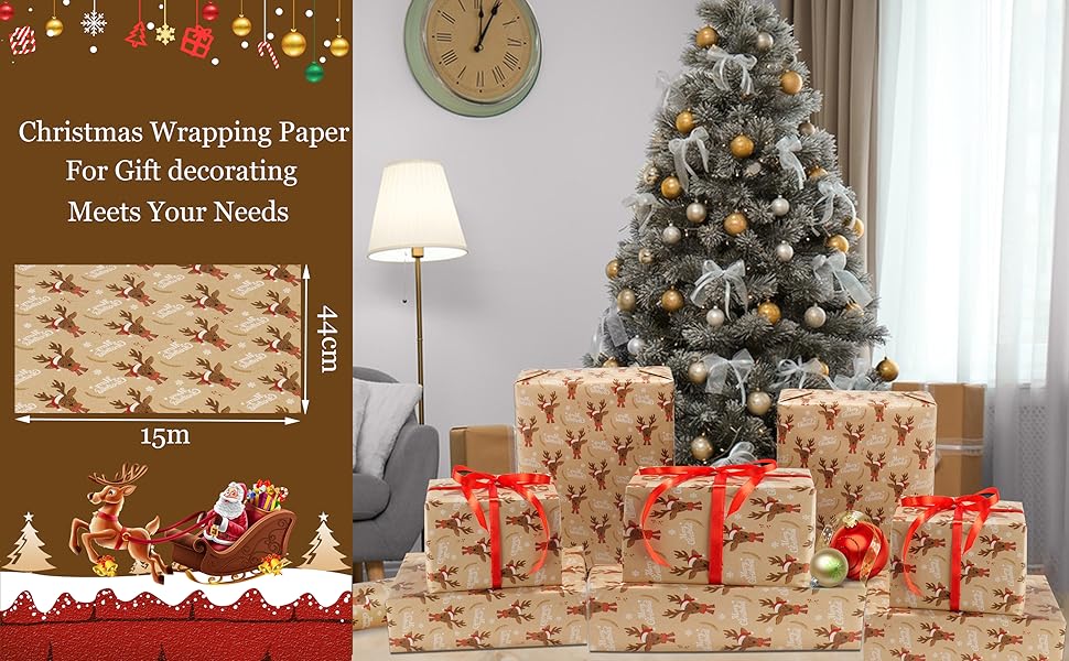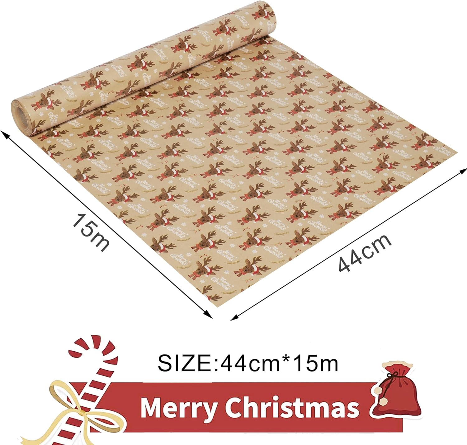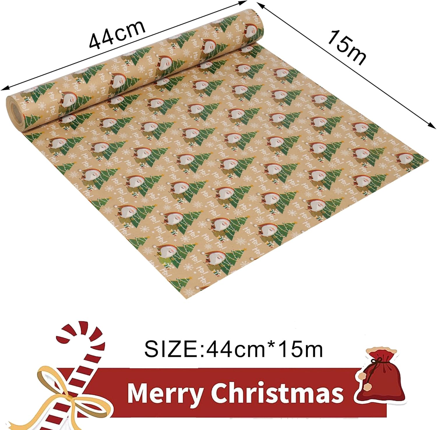 【Perfect Size】One roll Christmas wrapping paper size is 44cm x15M. This 15M Gift wrapping paper enough to wrap all your Christmas gifts.