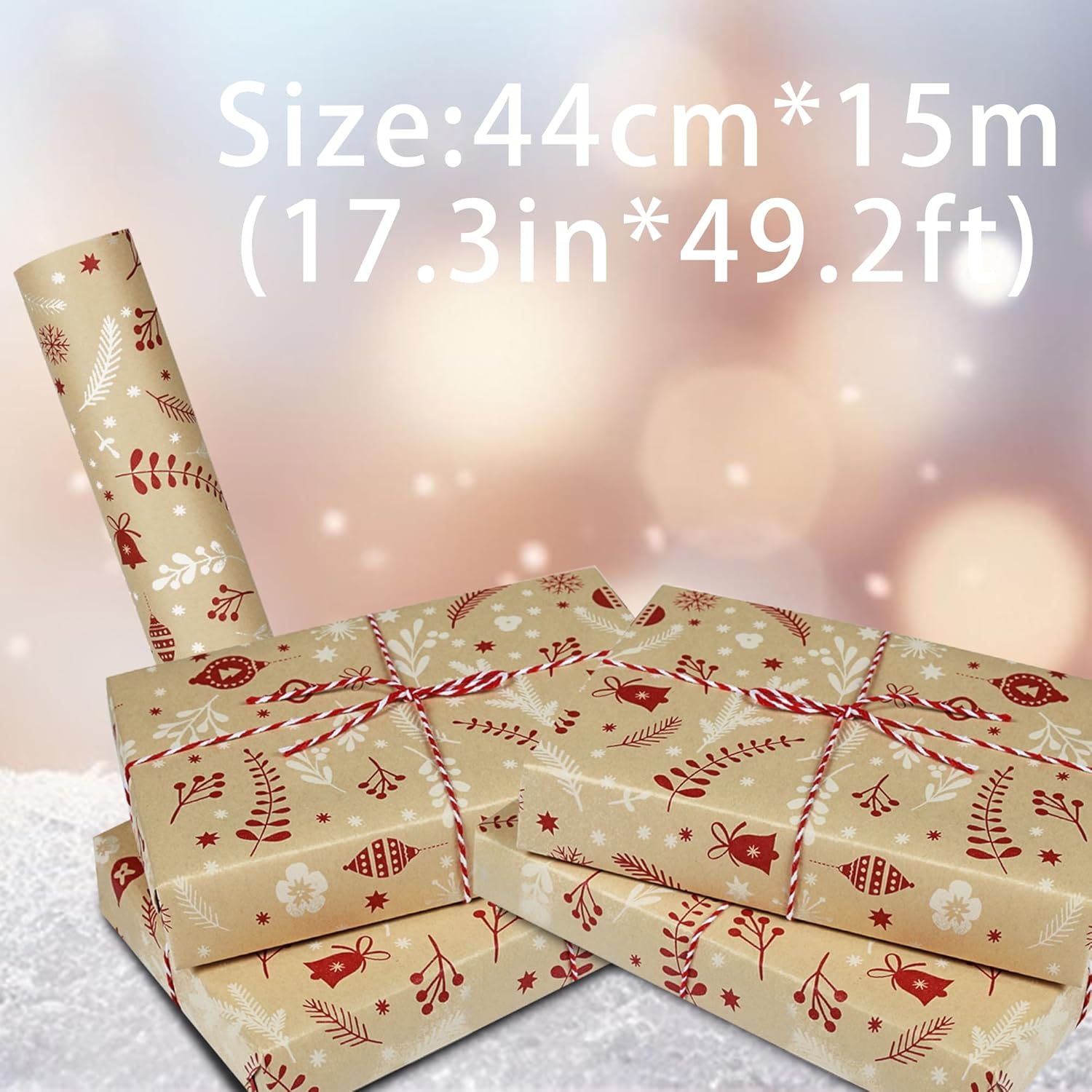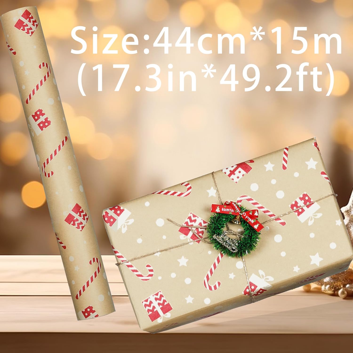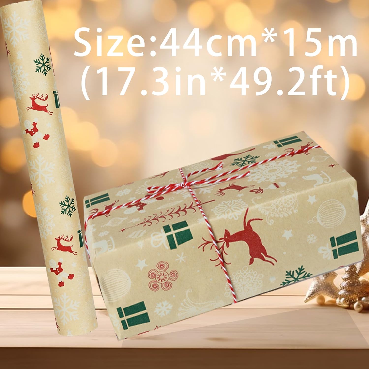【Perfect Size】One roll Christmas wrapping paper size is 44cm x15M. This 15M Gift wrapping paper enough to wrap all your Christmas gifts.