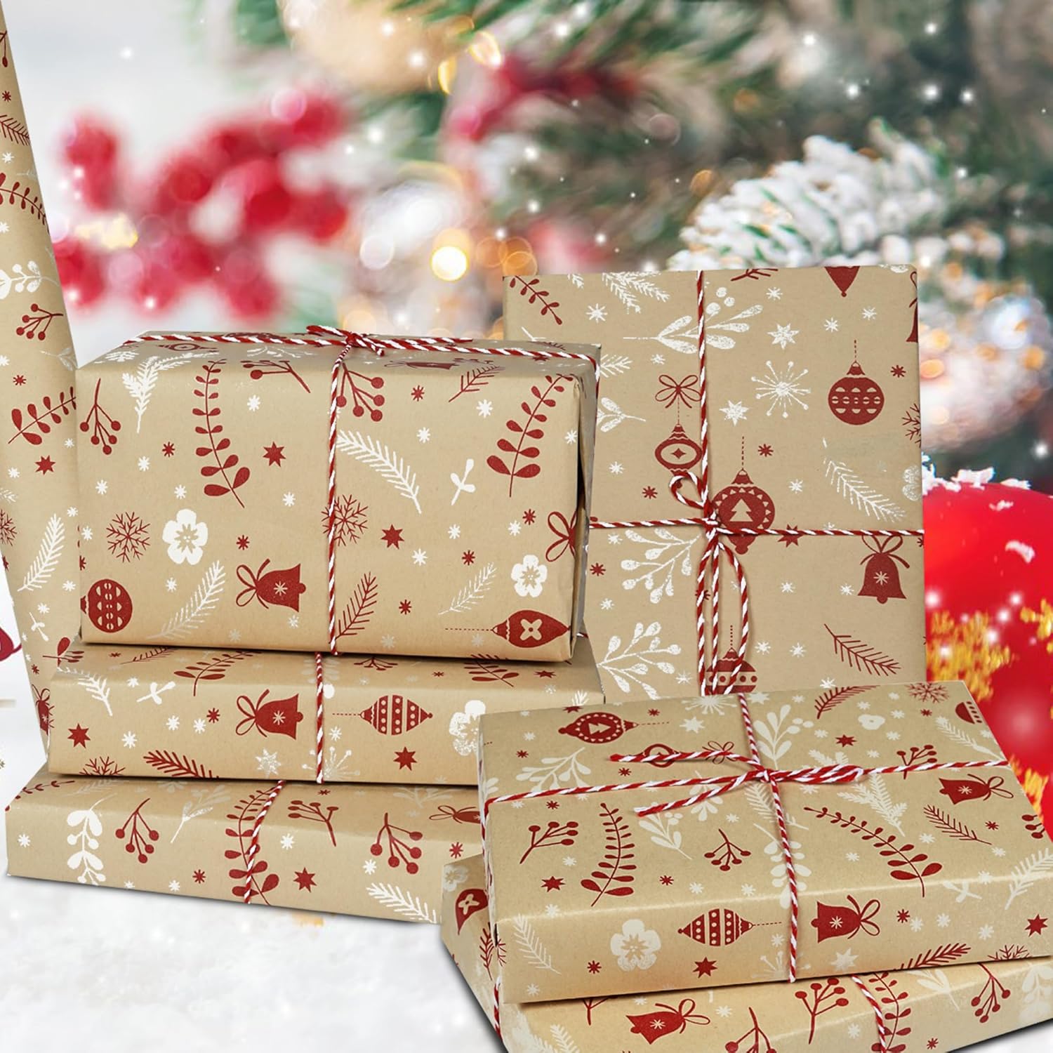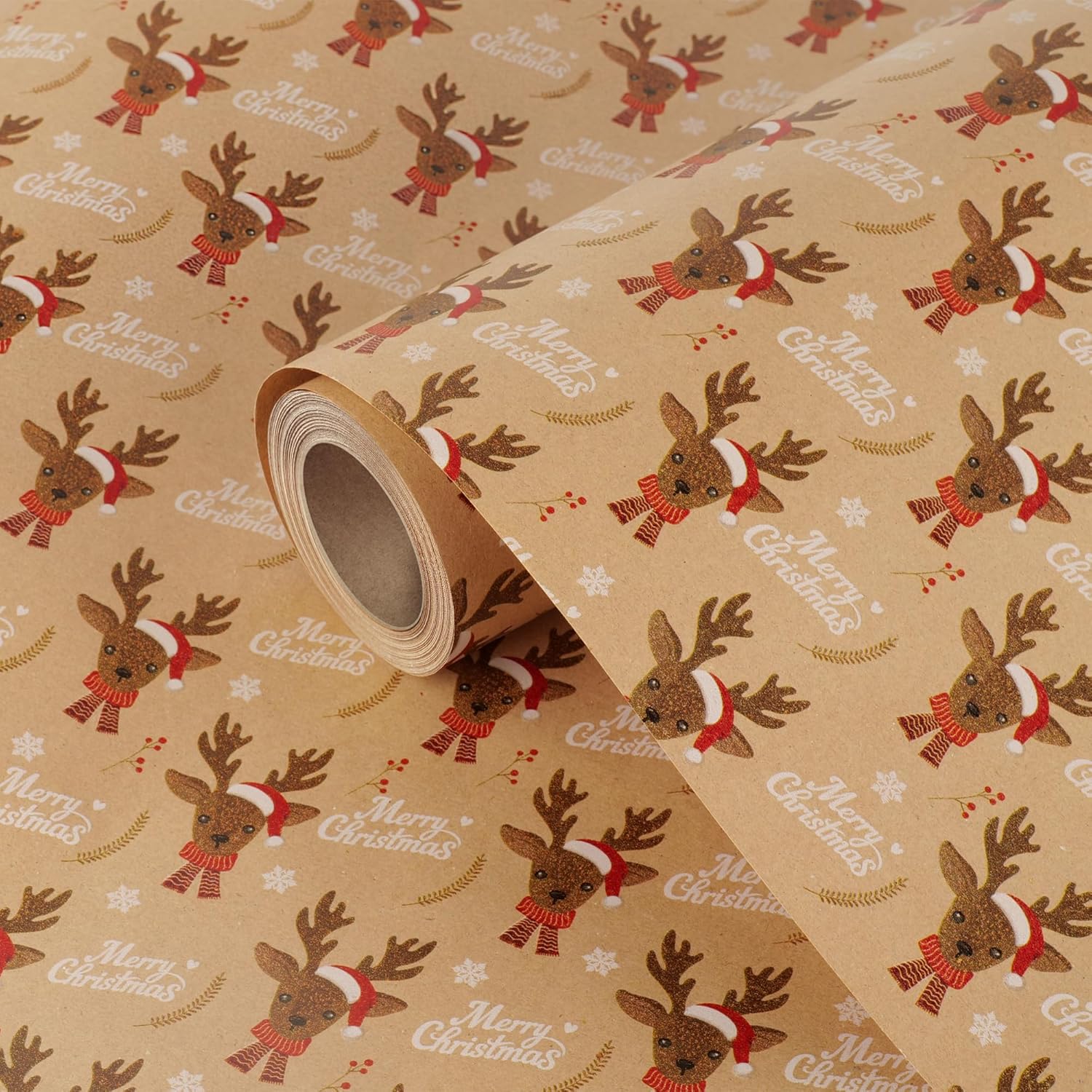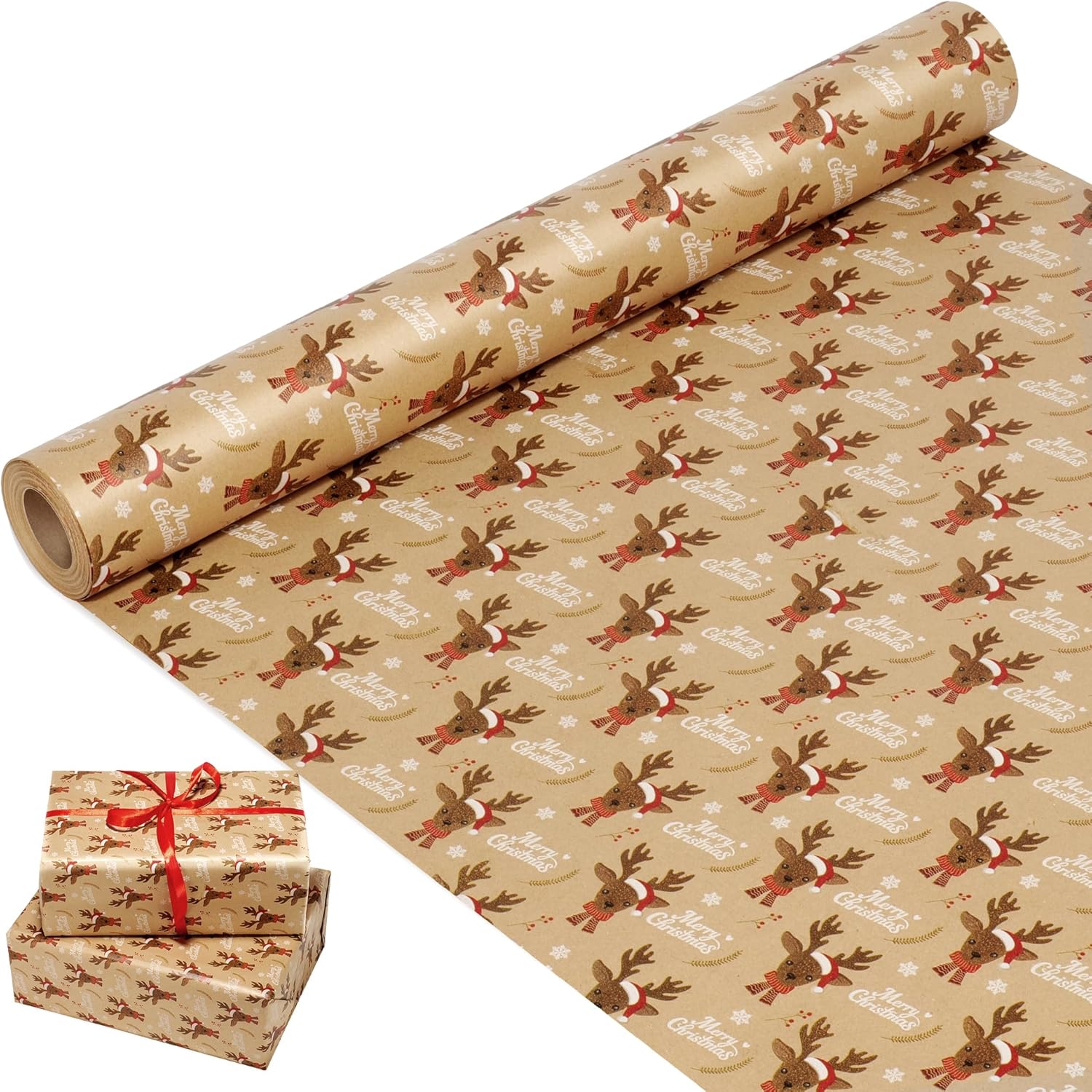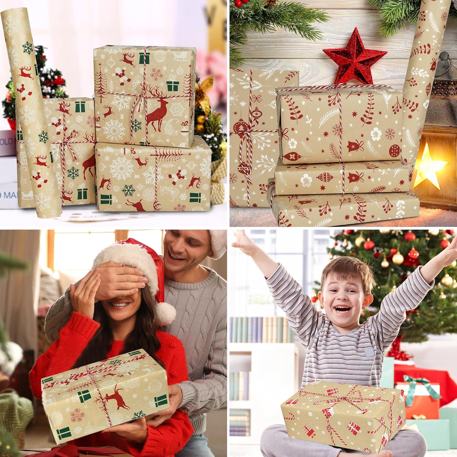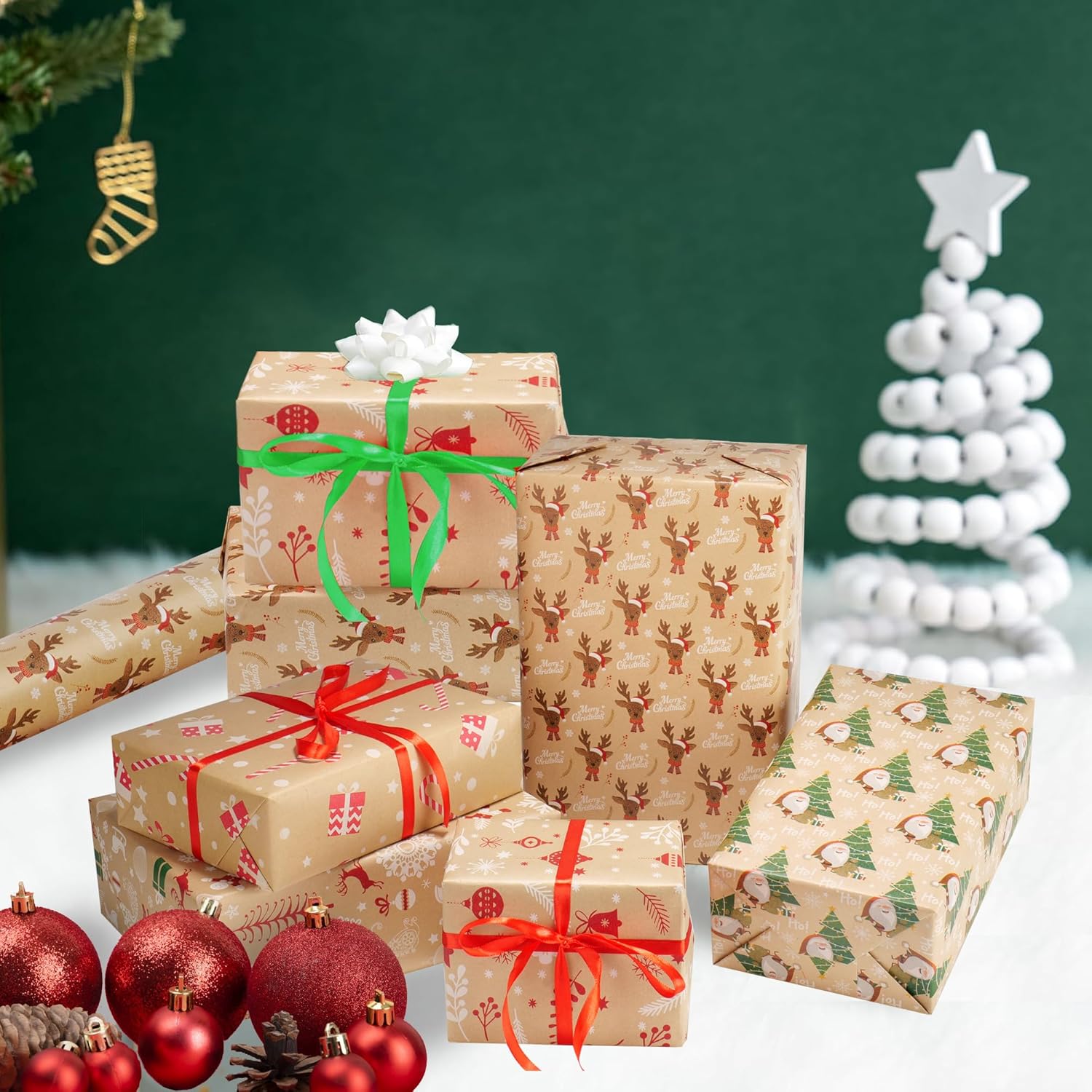【Unique Design Paper】The kraft Christmas wrapping are printed with Christmas element,as Elk, snowflake, Christmas tree etc. The design will make your gifts more eye-catcher in your party.