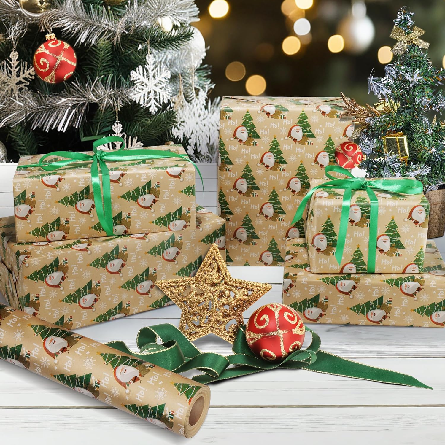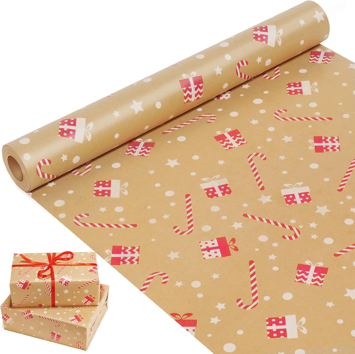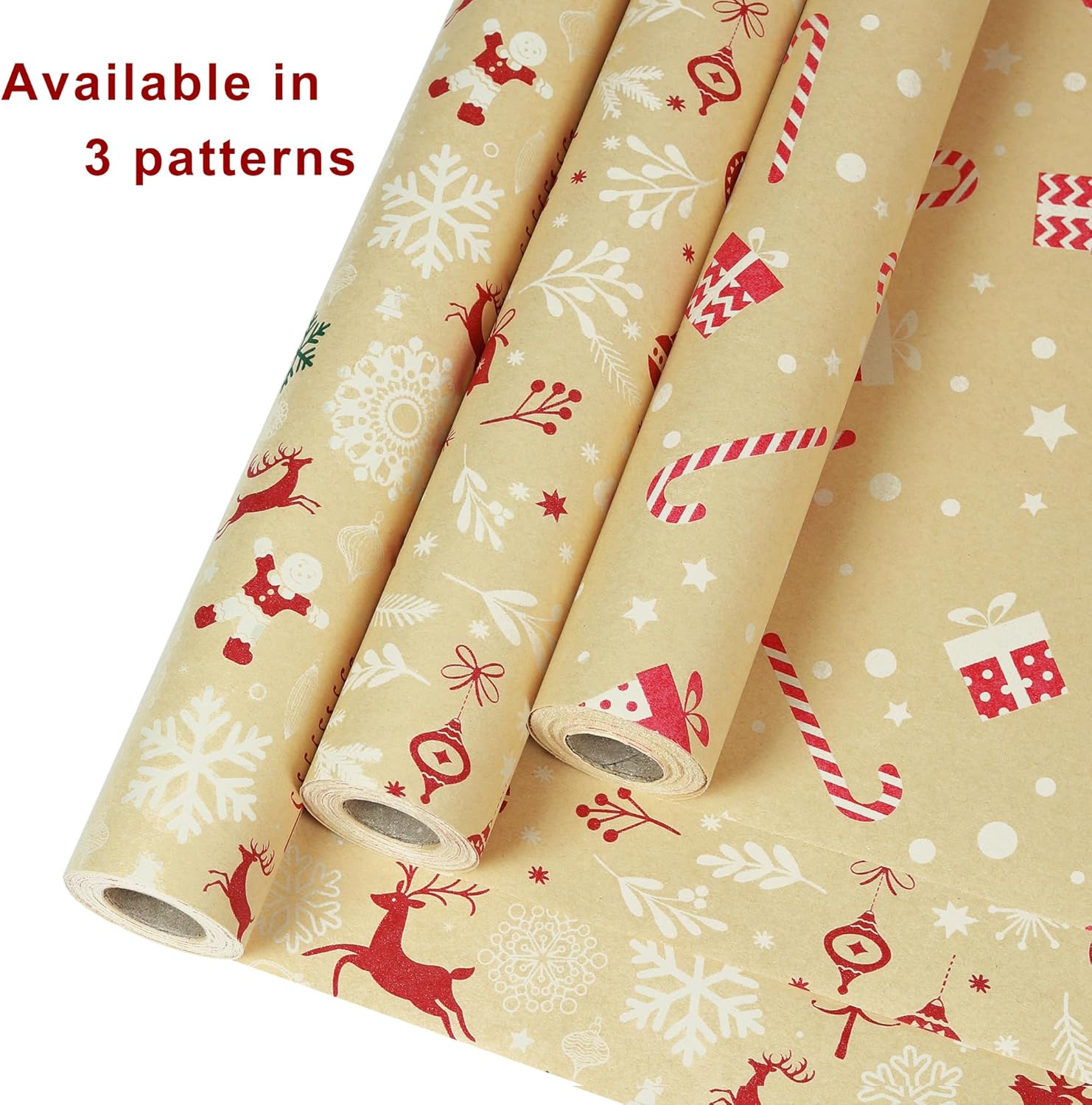 【Recyclable Gift Wrapping Paper】The Christmas gift wrapping paper is made of 100% recyclable and eco-friendly material. This Kraft wrapping paper is thick and can be folded at random not easy to be damaged and torn.
