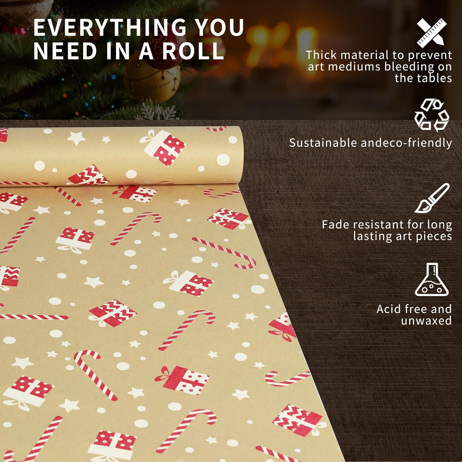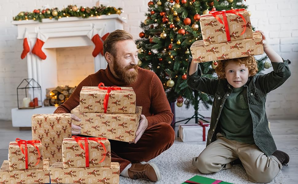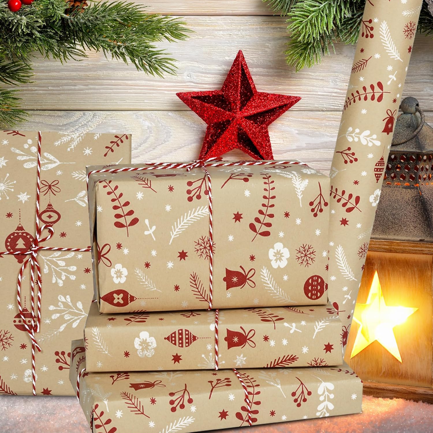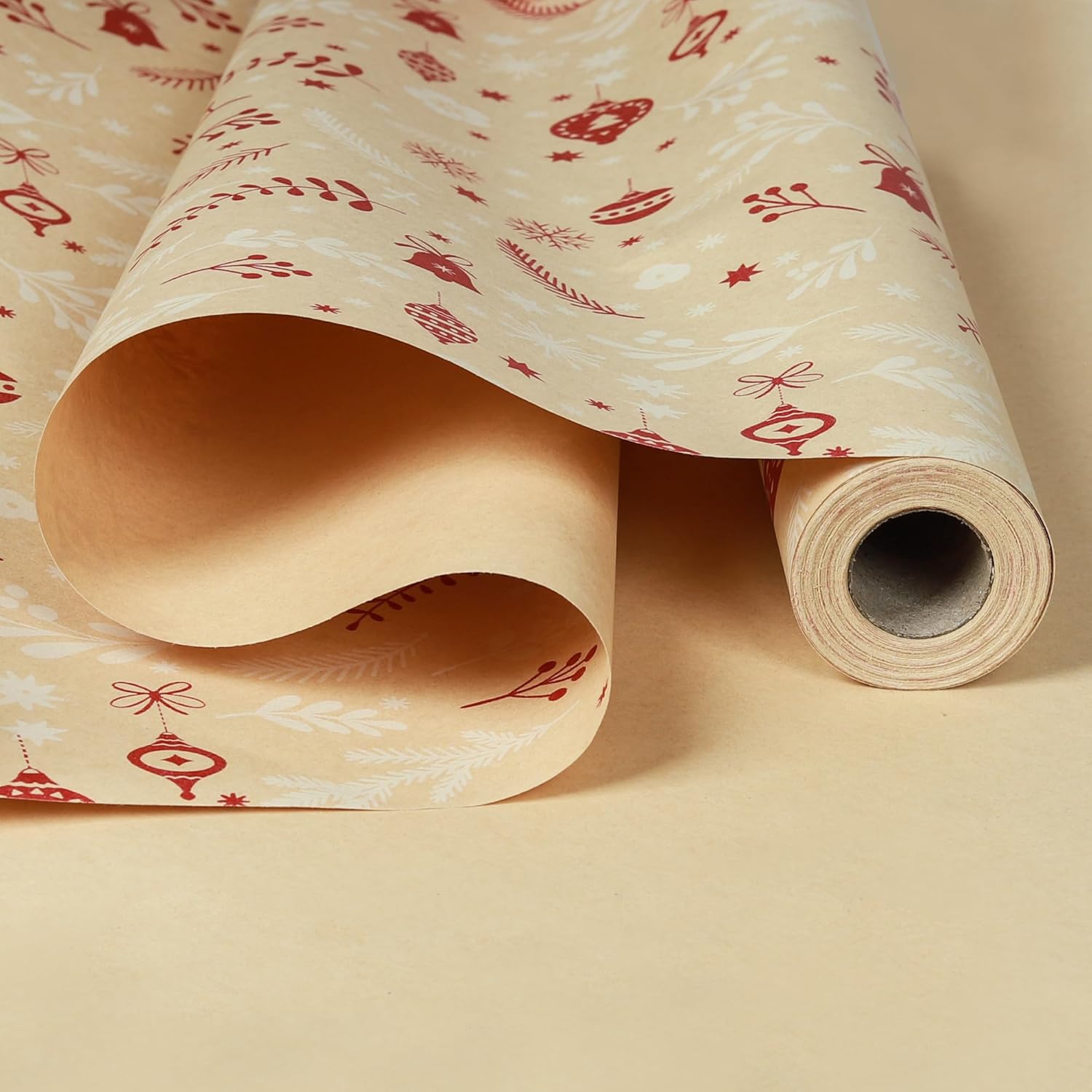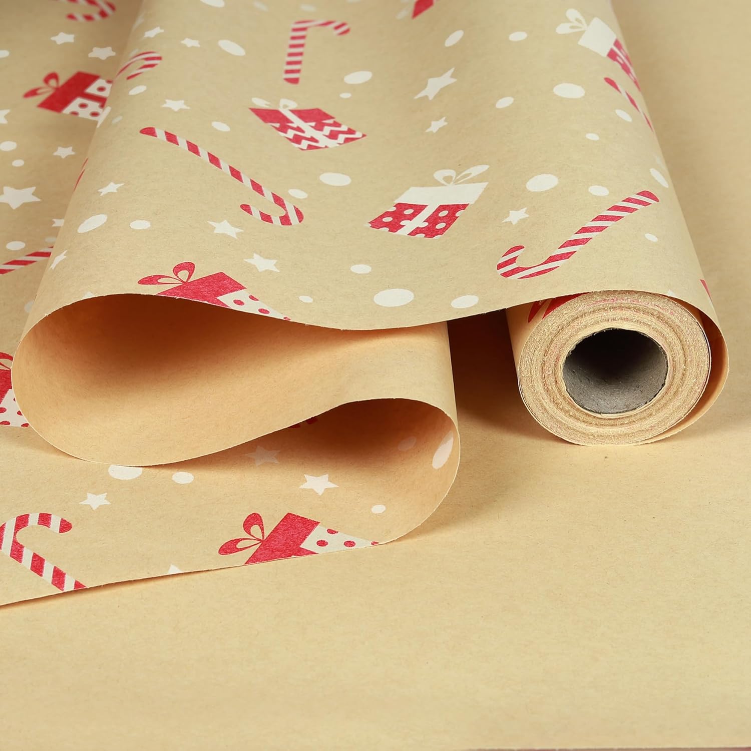 【Recyclable Gift Wrapping Paper】The Christmas gift wrapping paper is made of 100% recyclable and eco-friendly material. This Kraft wrapping paper is thick and can be folded at random not easy to be damaged and torn.
