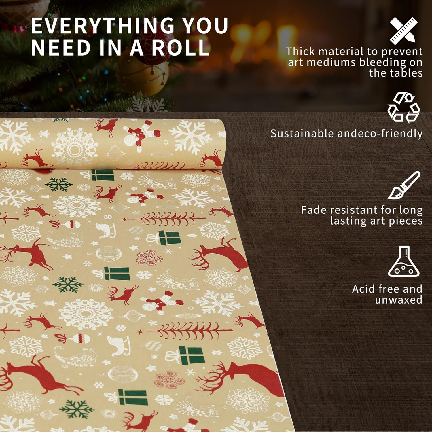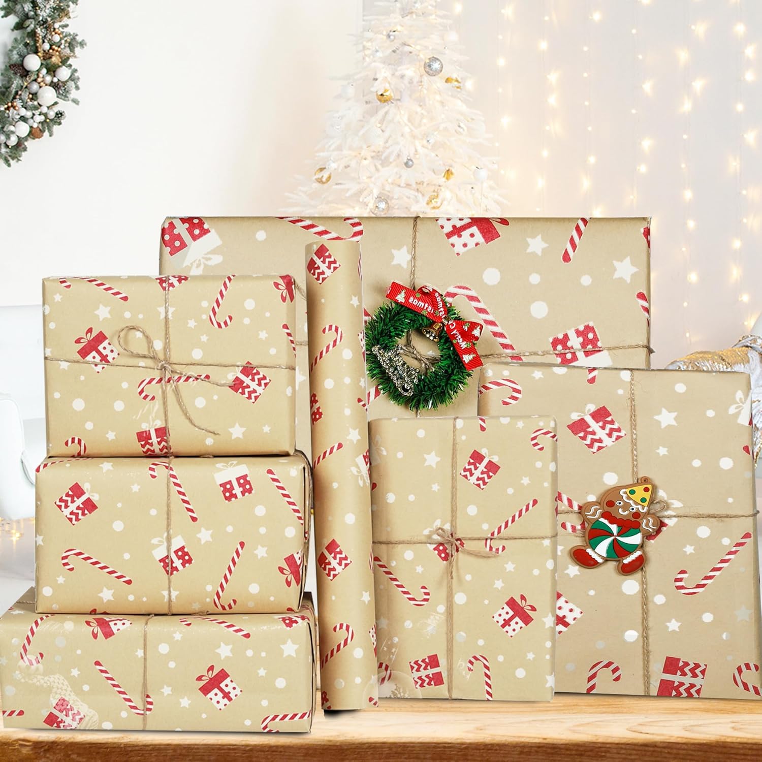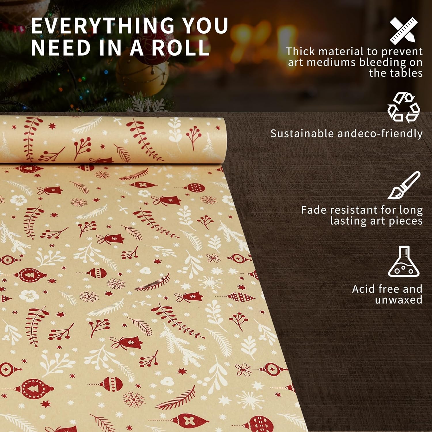 【Recyclable Gift Wrapping Paper】The Christmas gift wrapping paper is made of 100% recyclable and eco-friendly material. This Kraft wrapping paper is thick and can be folded at random not easy to be damaged and torn.