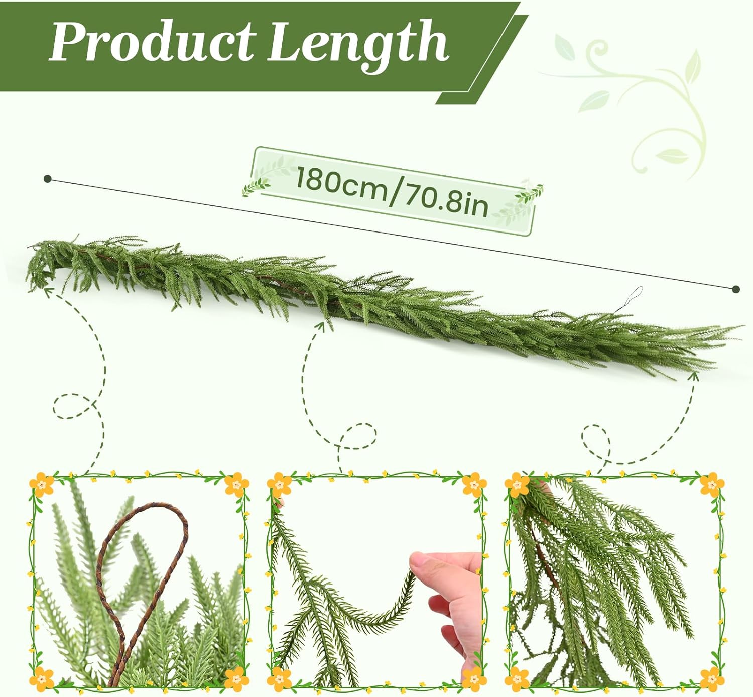 【Easy to Install】You can fold or cut christmas garland into different shapes, ensure your decoration will look beautifully presented this christmas, fluffy effect to decorate your home, courtyard and garden at christmas with a traditional wreath.