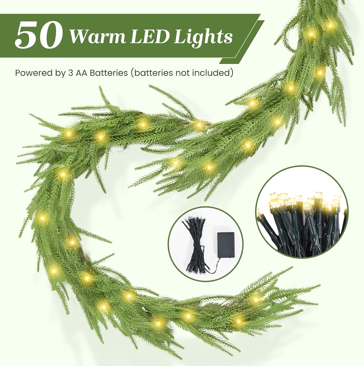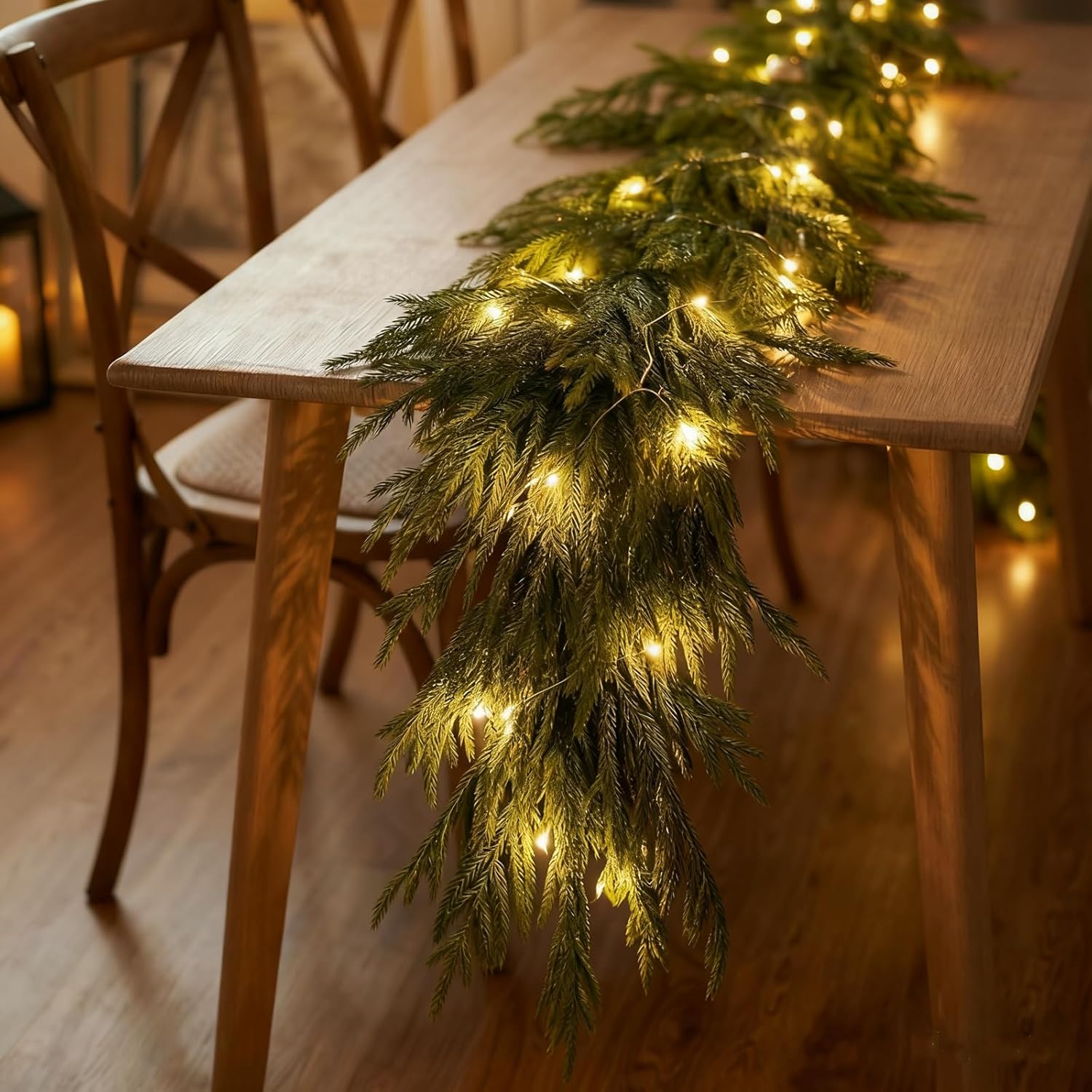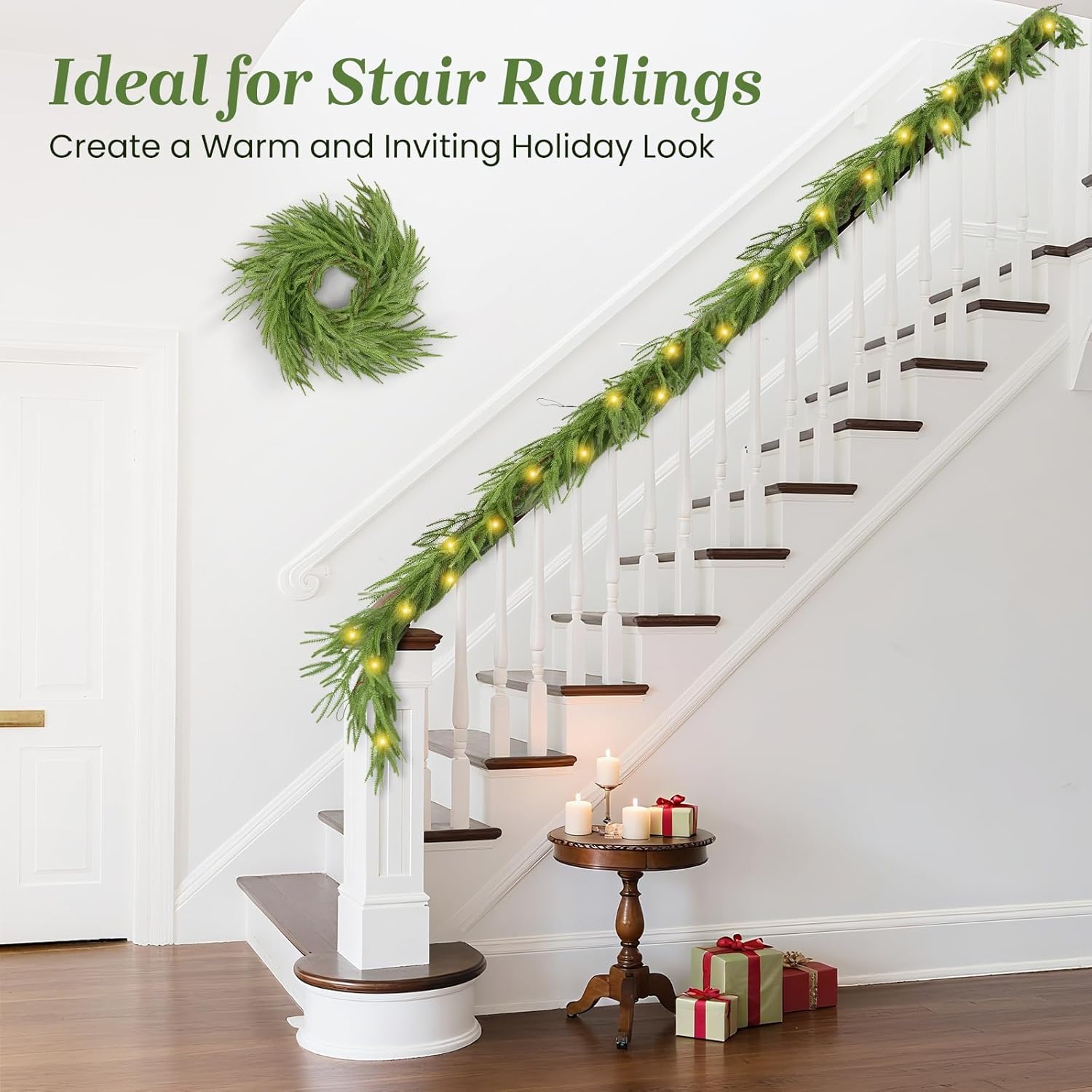 【Wide Application】This Christmas garland will brighten up the look of any room and makes a perfect addition to any home's decor. Ideal for Christmas party, wedding, bedroom, garden, balcony, swing stand, shopping malls, mantels, doors, table centerpiece and covered front porch staircase and many other decorations.