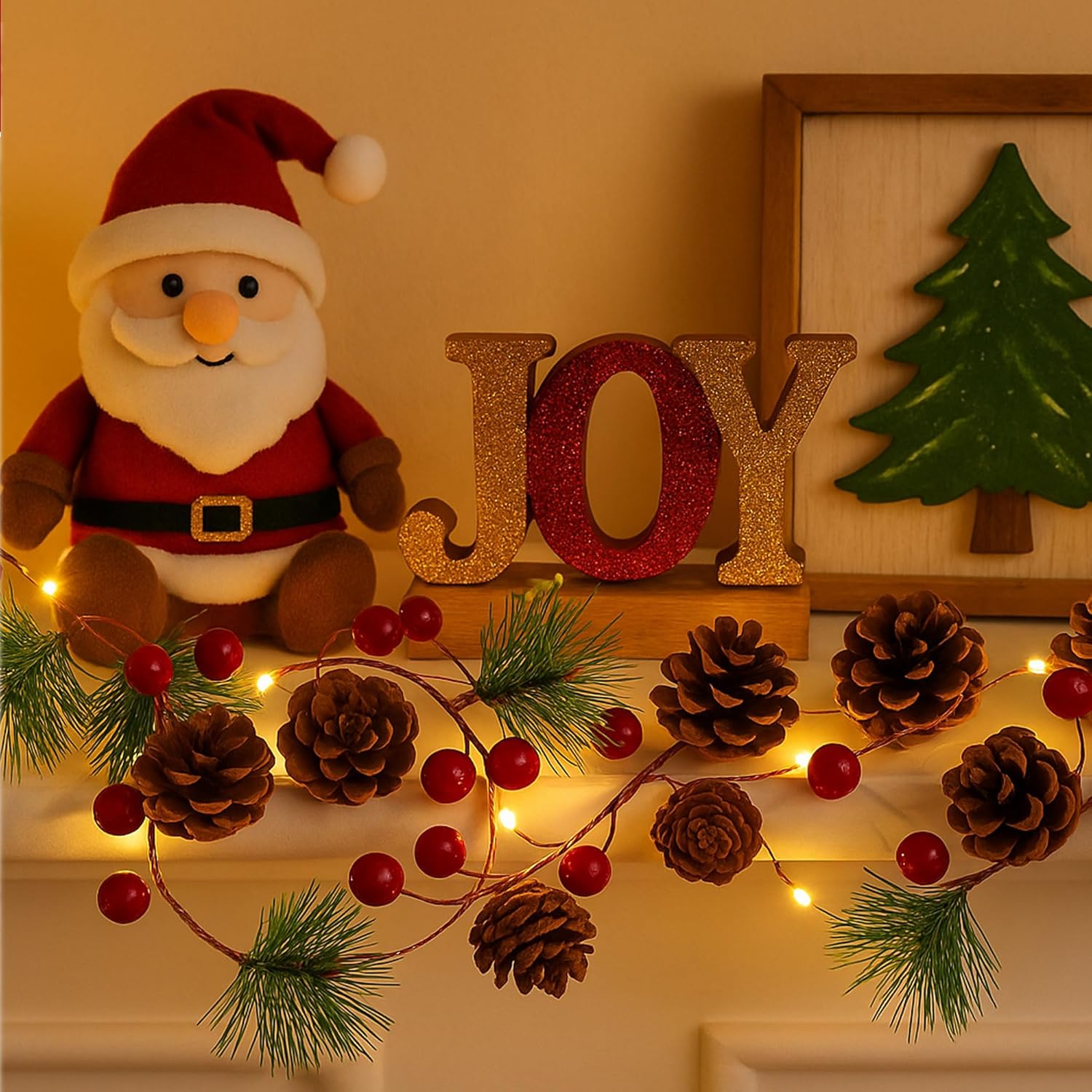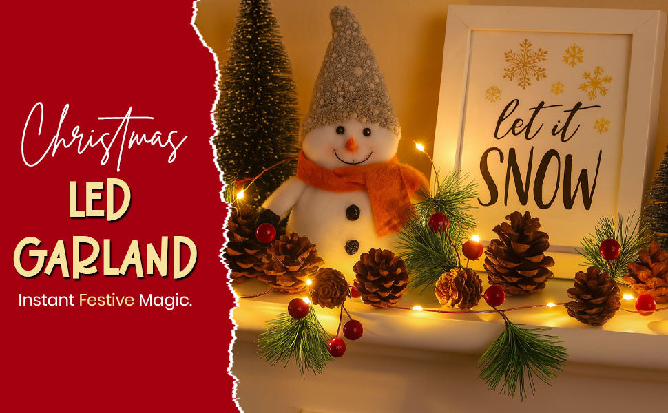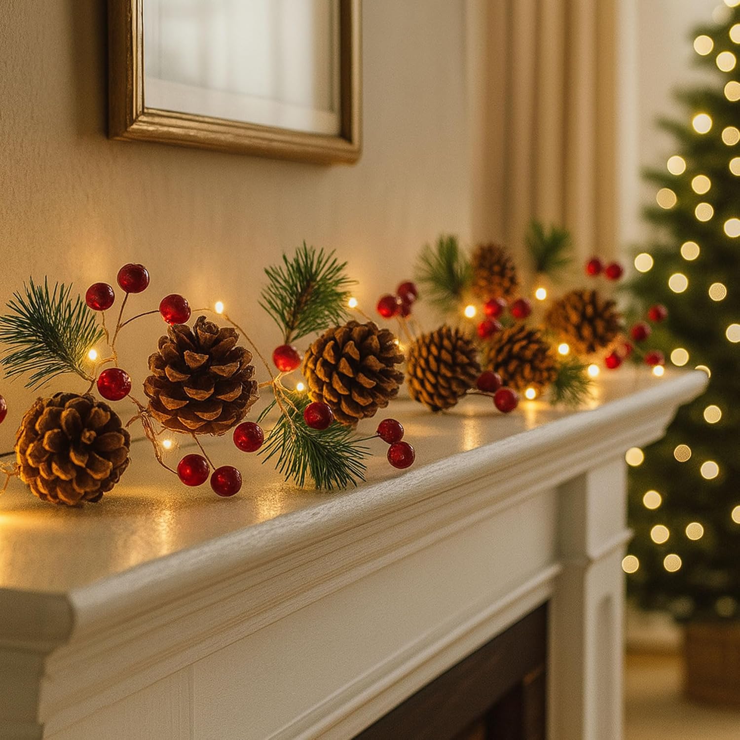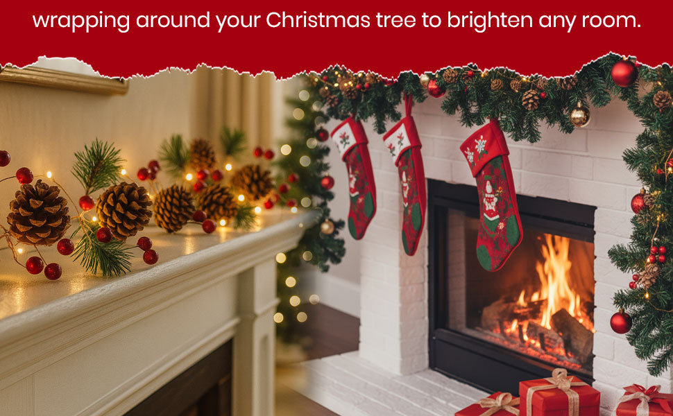 Fireplace Garland Christmas; A Christmas mantle garland with lights to brighten up any space, or pair with other xmas dinner table decorations and use as table garland Christmas decorations for room