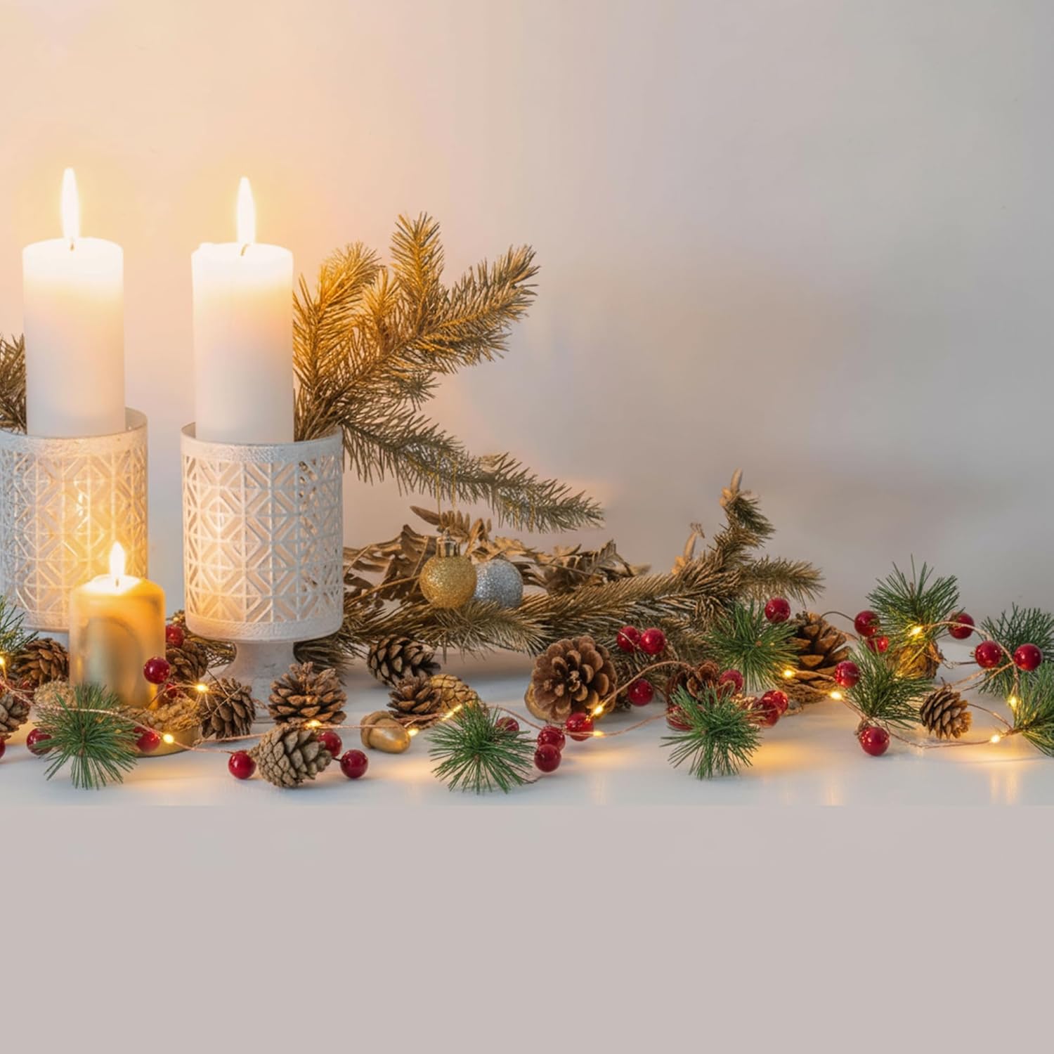 Christmas Lights Garland; This prelit garland Christmas lights is a versatile Christmas house decorations, use as Christmas garland for mirror, Christmas garland for picture frames or table garland
