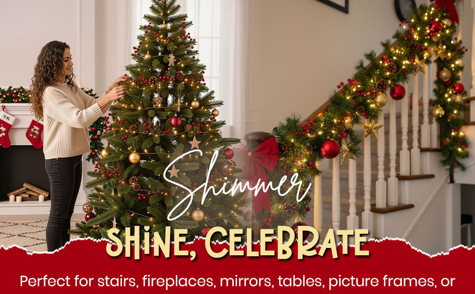 Christmas Tree Garland; Wrap the Christmas garland lights around the Christmas tree or use as Christmas stair lights Christmas bannister decorations, a garlands Christmas decoration for any room