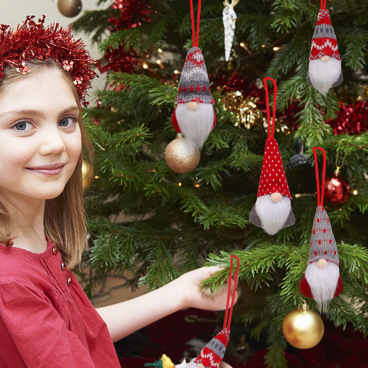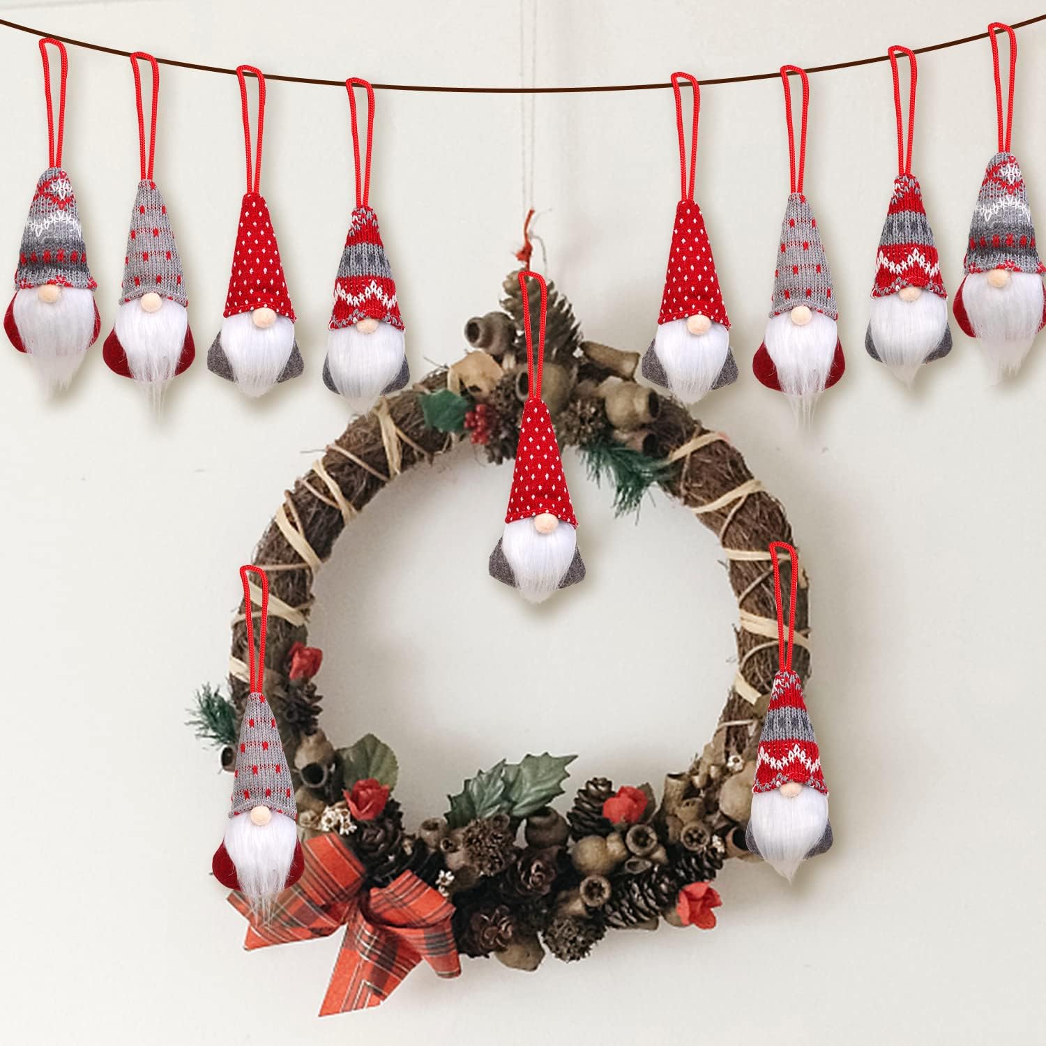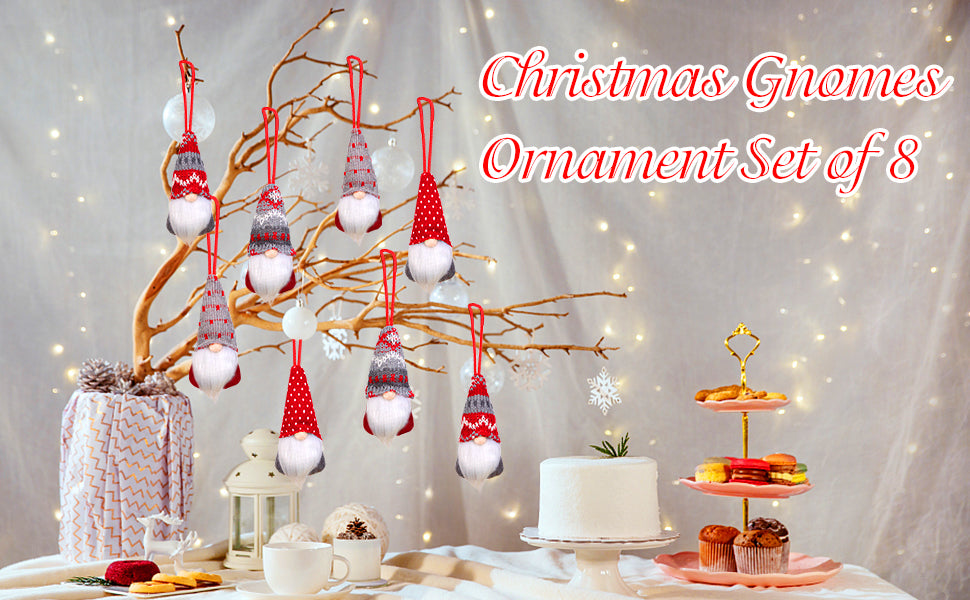 Christmas Gnomes Hanging Ornaments Set of 8, Swedish Gnome Handmade Plush Santa Elves Christmas Tree Hanging Decorations Xmas Decorations