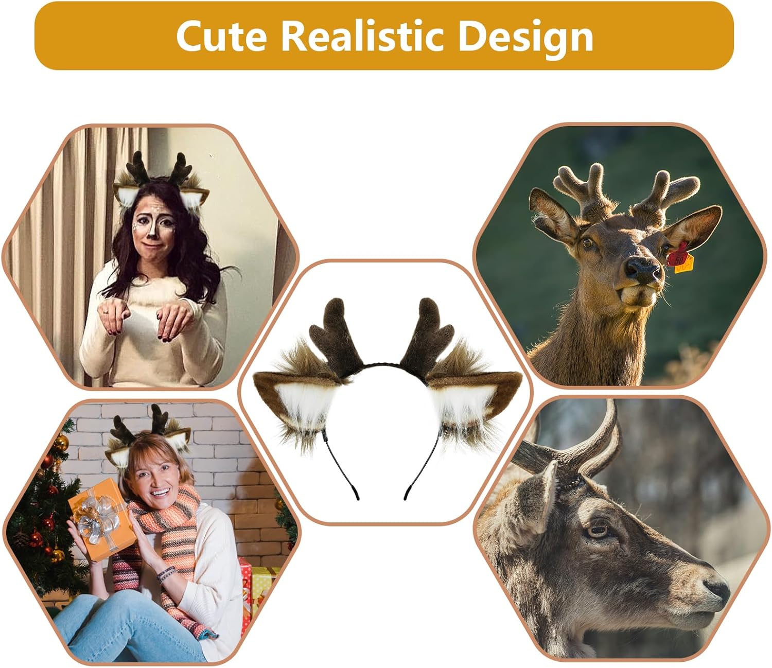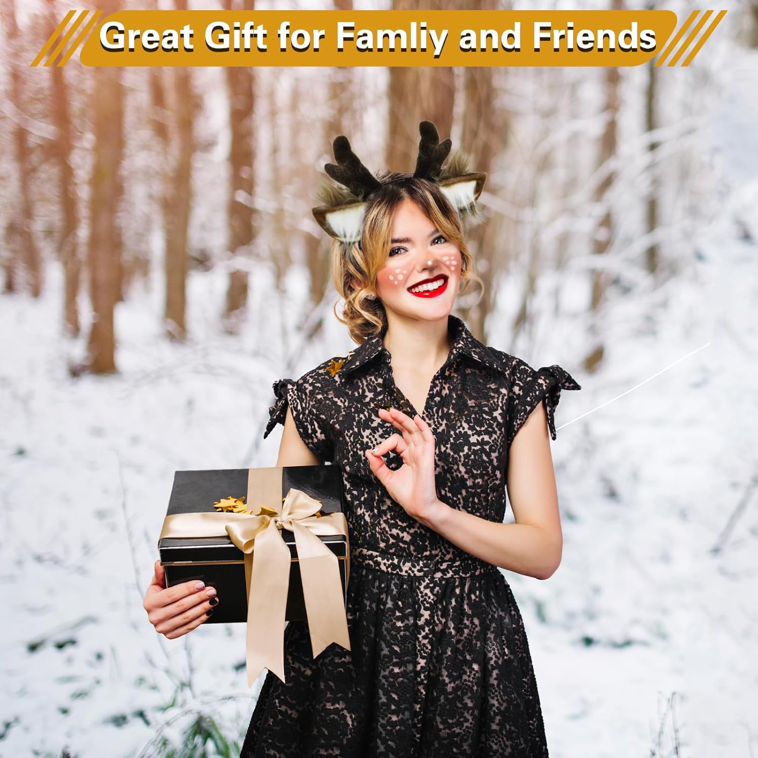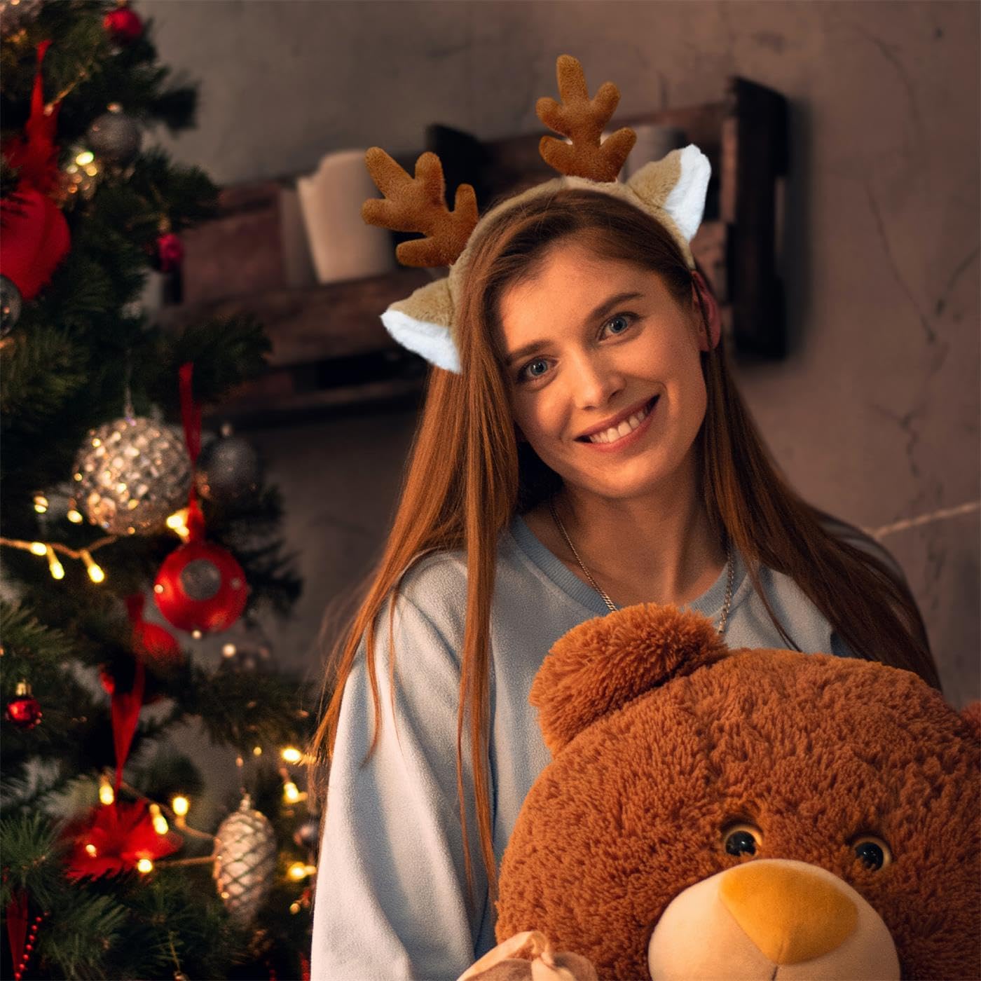 Novelty Reindeer Headband: Embrace the festive spirit with the reindeer antlers headband, featuring a touch of sparkle with every movement. It's the perfect accessory for a dazzling Christmas look