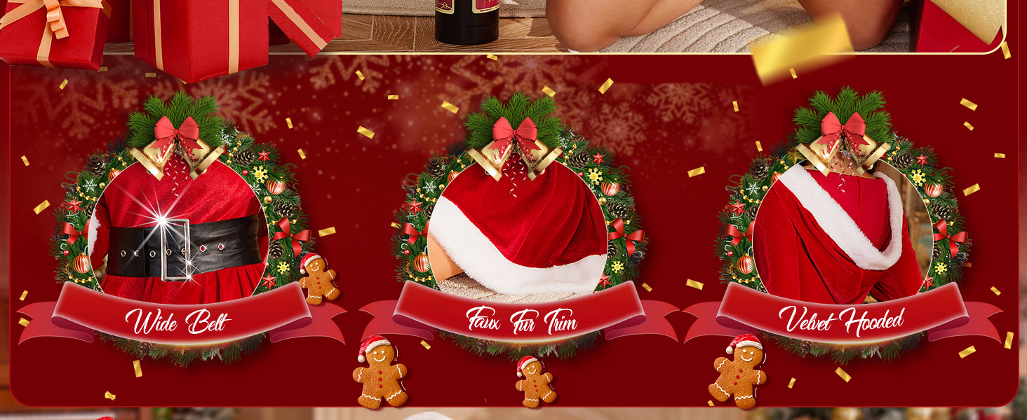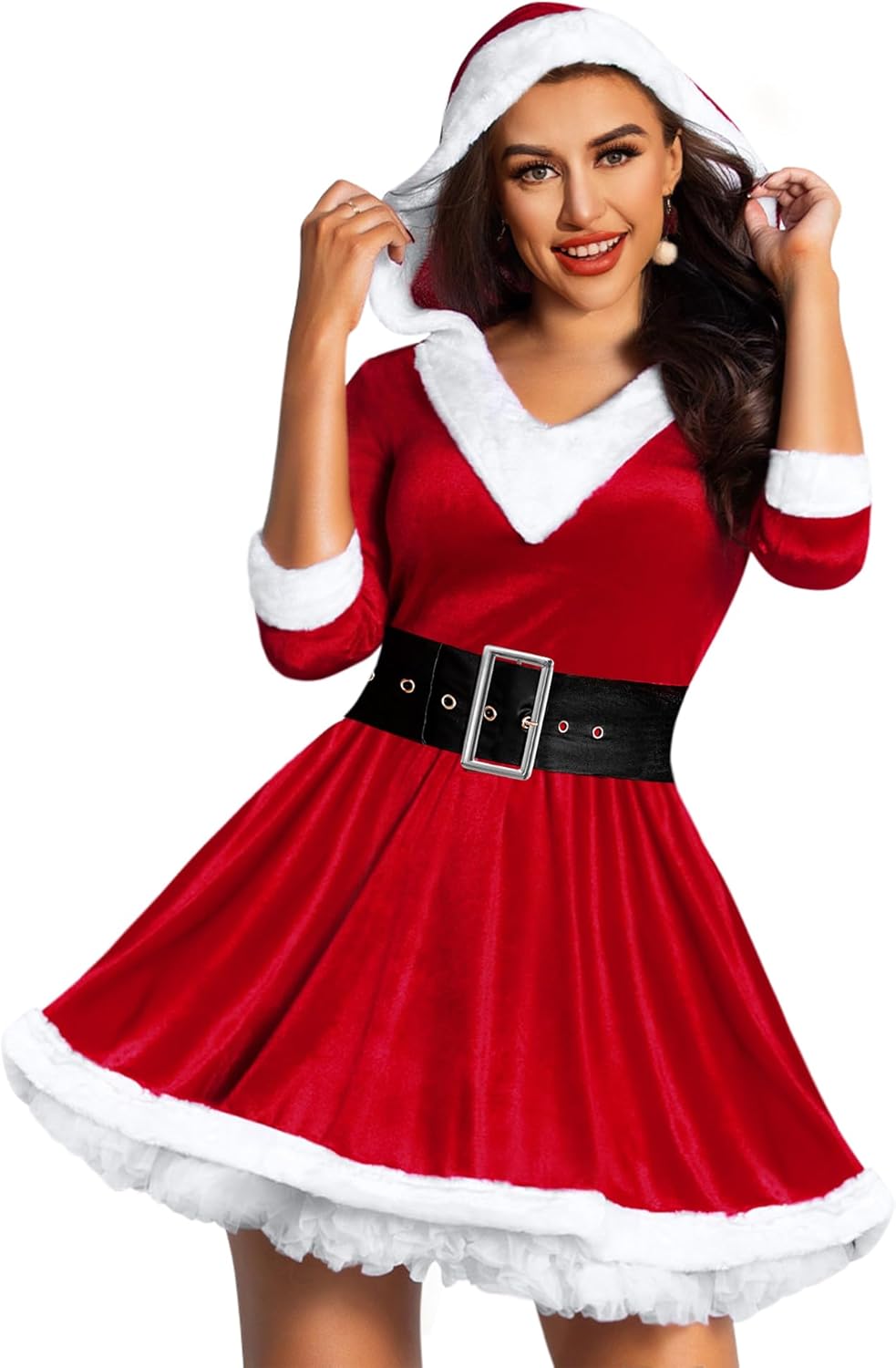 Classic Design: Christmas sexy costume boasts a timeless design. Featuring a classic A-line silhouette and an attached hood with furry trim, it exudes a cozy Christmas vibe. V-neckline enhances your curves, making you feel irresistibly sexy.