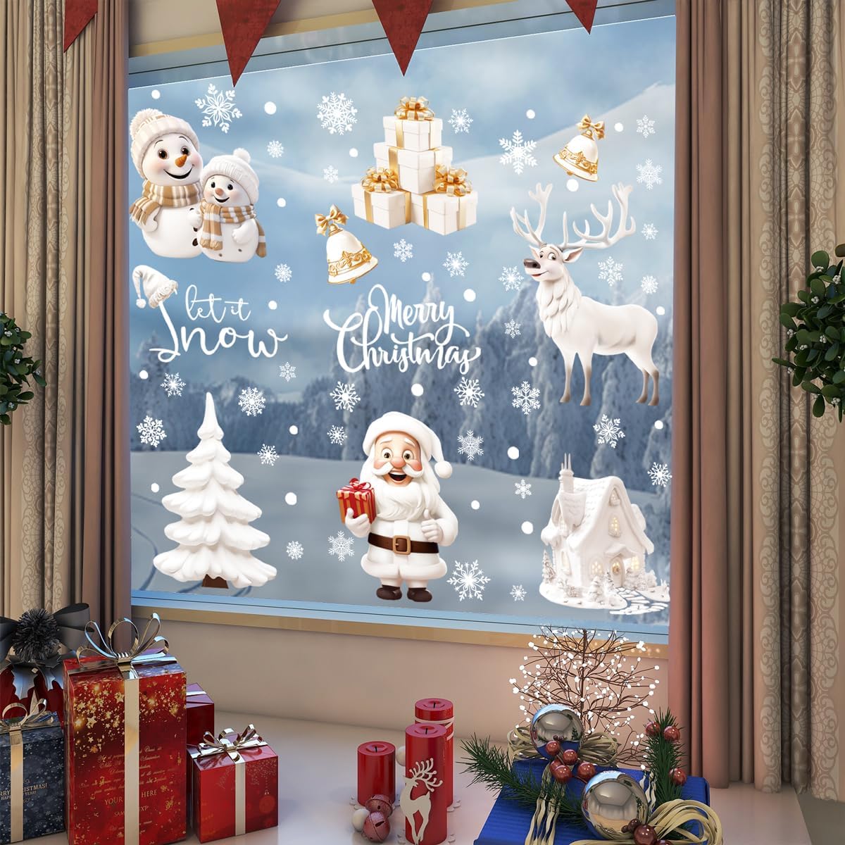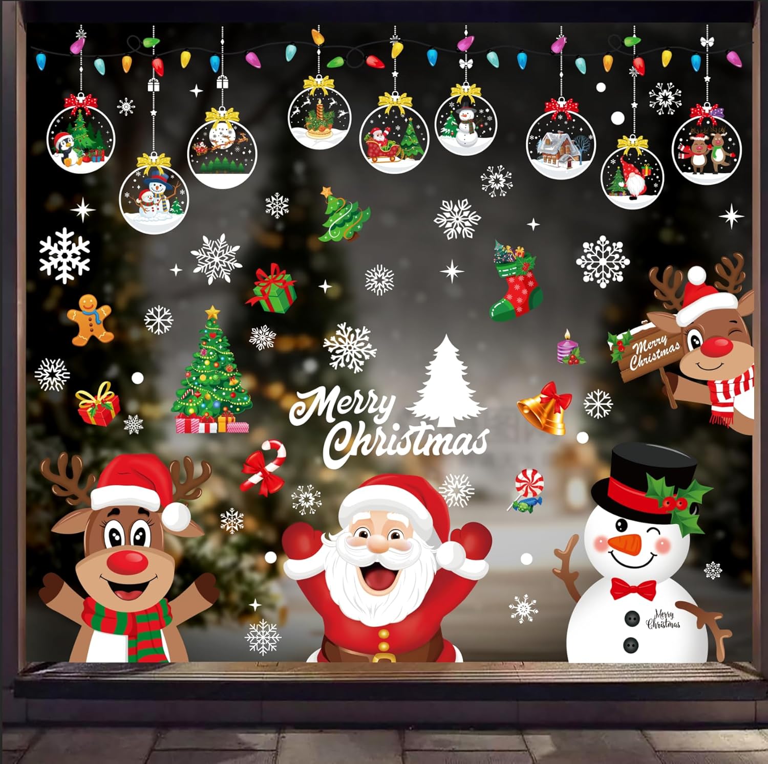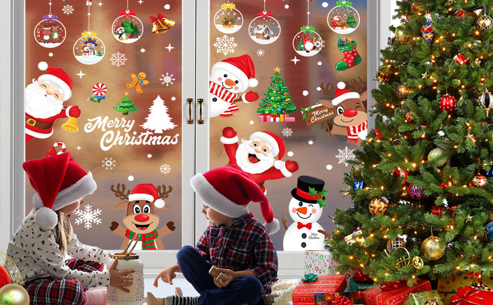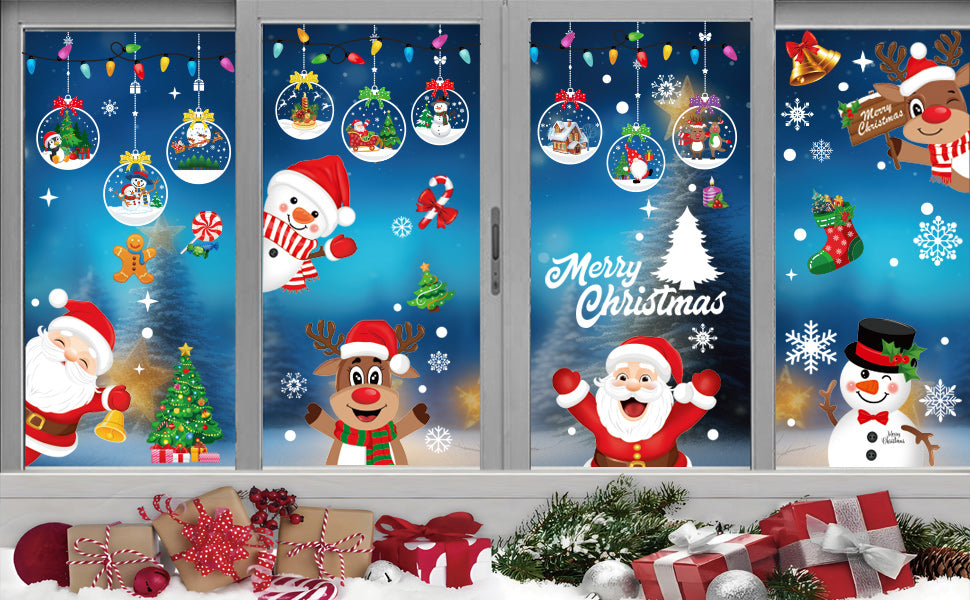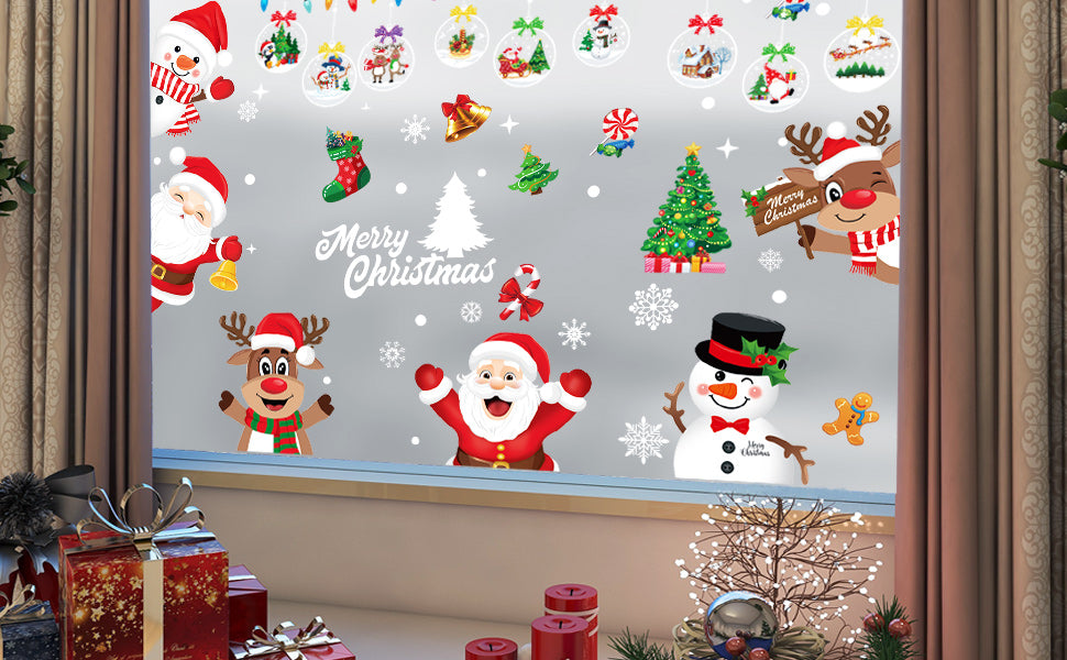 【Reusable Window Christmas Decorations】The Christmas decorations window stickers use the electrostatic adhesion principle and adhesive-free design makes them perfect for all smooth surfaces like snow spray window glass. They’re easy to remove without leaving a trace, If misplaced, simply peel off and stick again. Being Christmas window stickers reusable, you can store them flat and in a cool place and use them again next year.