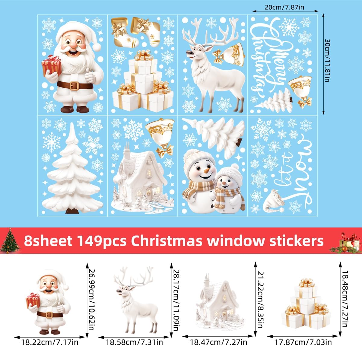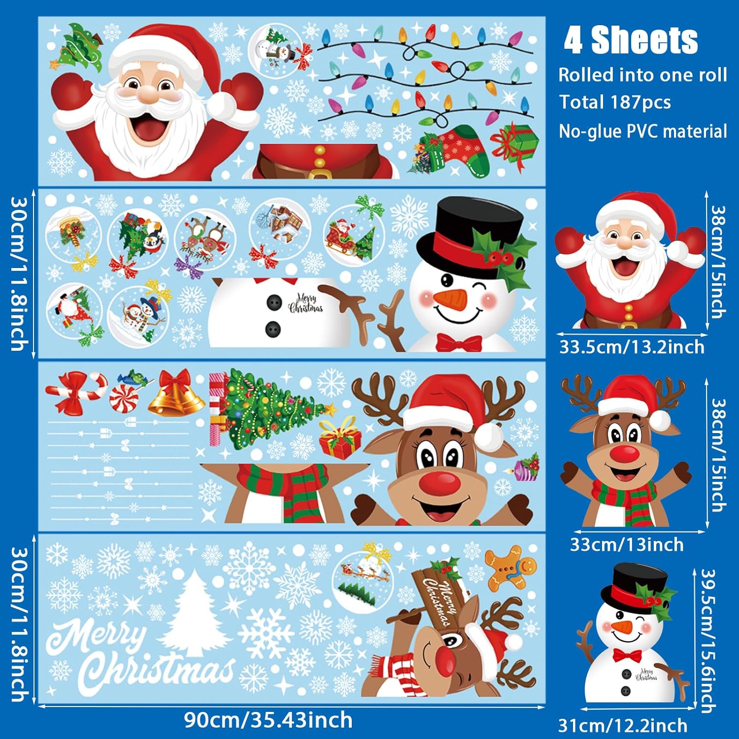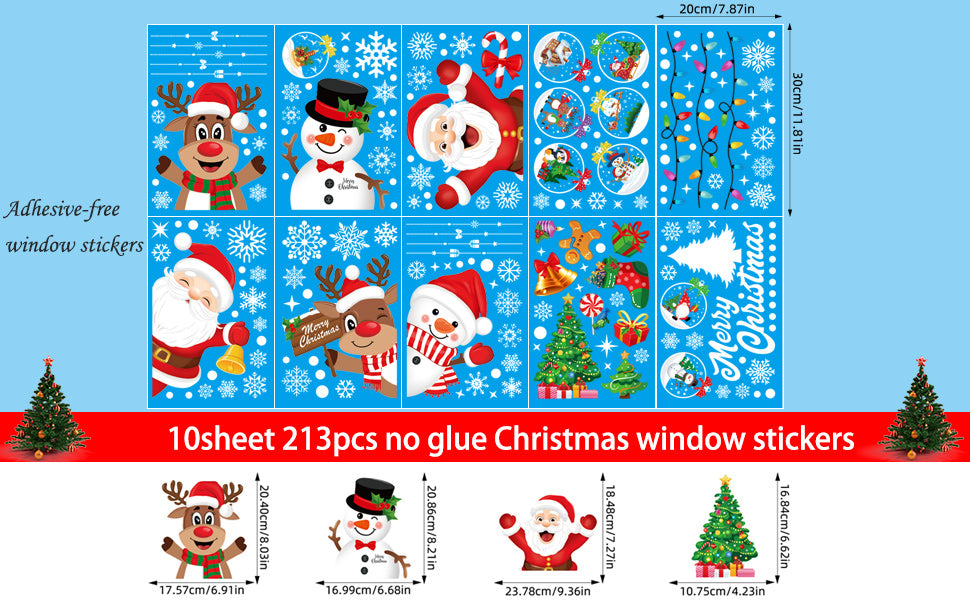 【10 Sheets Cheerful Christmas Window Decorations】- You will get 10 sheets with a total of 213 vibrant Christmas window stickers snowflakes. Featuring a variety of festive designs, Christmas window decals including Santa, snowmen, reindeer and Christmas tree, these Christmas window clings will perfectly enhance your holiday Christmas decor and delight your family this Christmas!