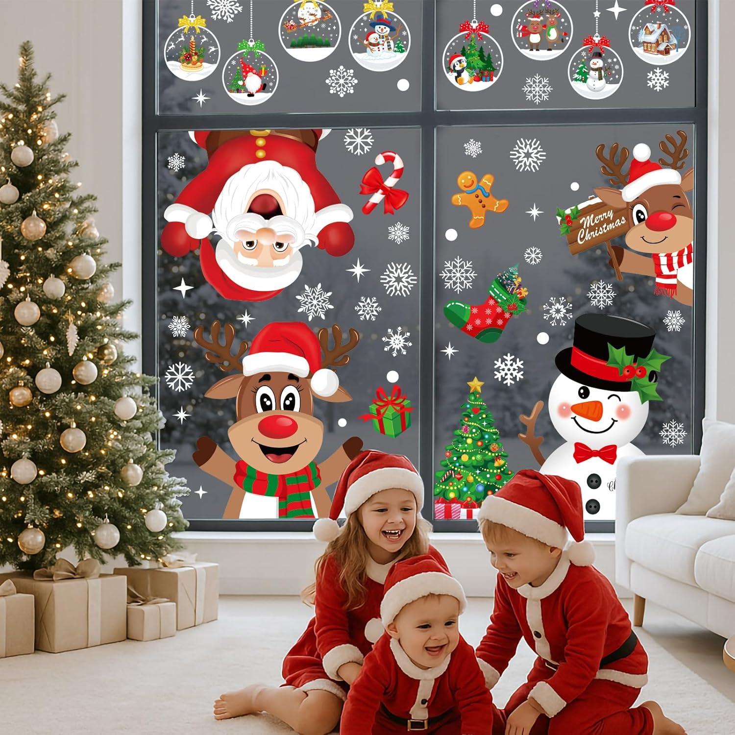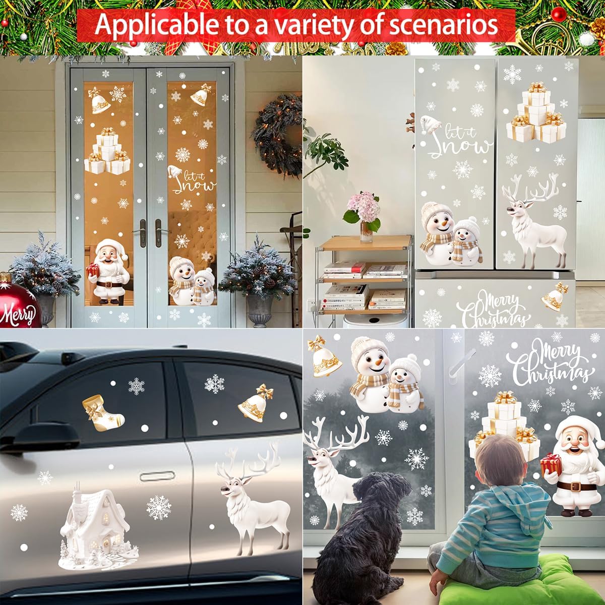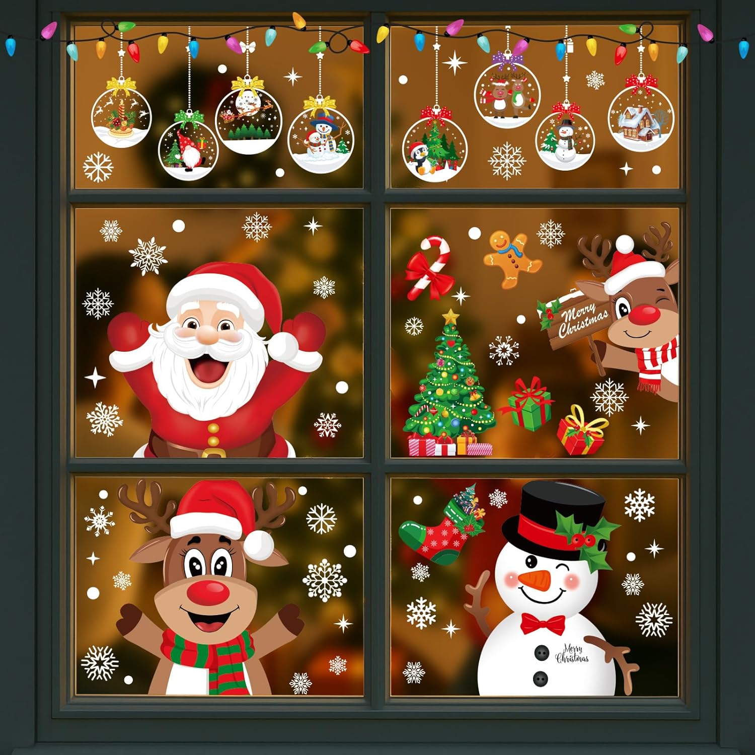 【10 Sheets Cheerful Christmas Window Decorations】- You will get 10 sheets with a total of 213 vibrant Christmas window stickers snowflakes. Featuring a variety of festive designs, Christmas window decals including Santa, snowmen, reindeer and Christmas tree, these Christmas window clings will perfectly enhance your holiday Christmas decor and delight your family this Christmas!