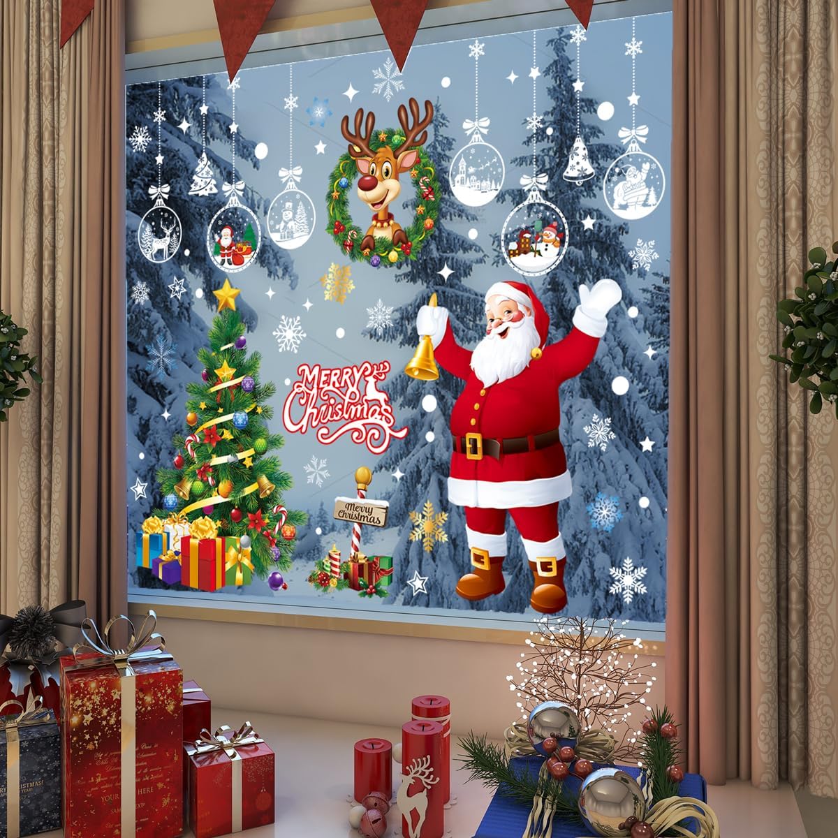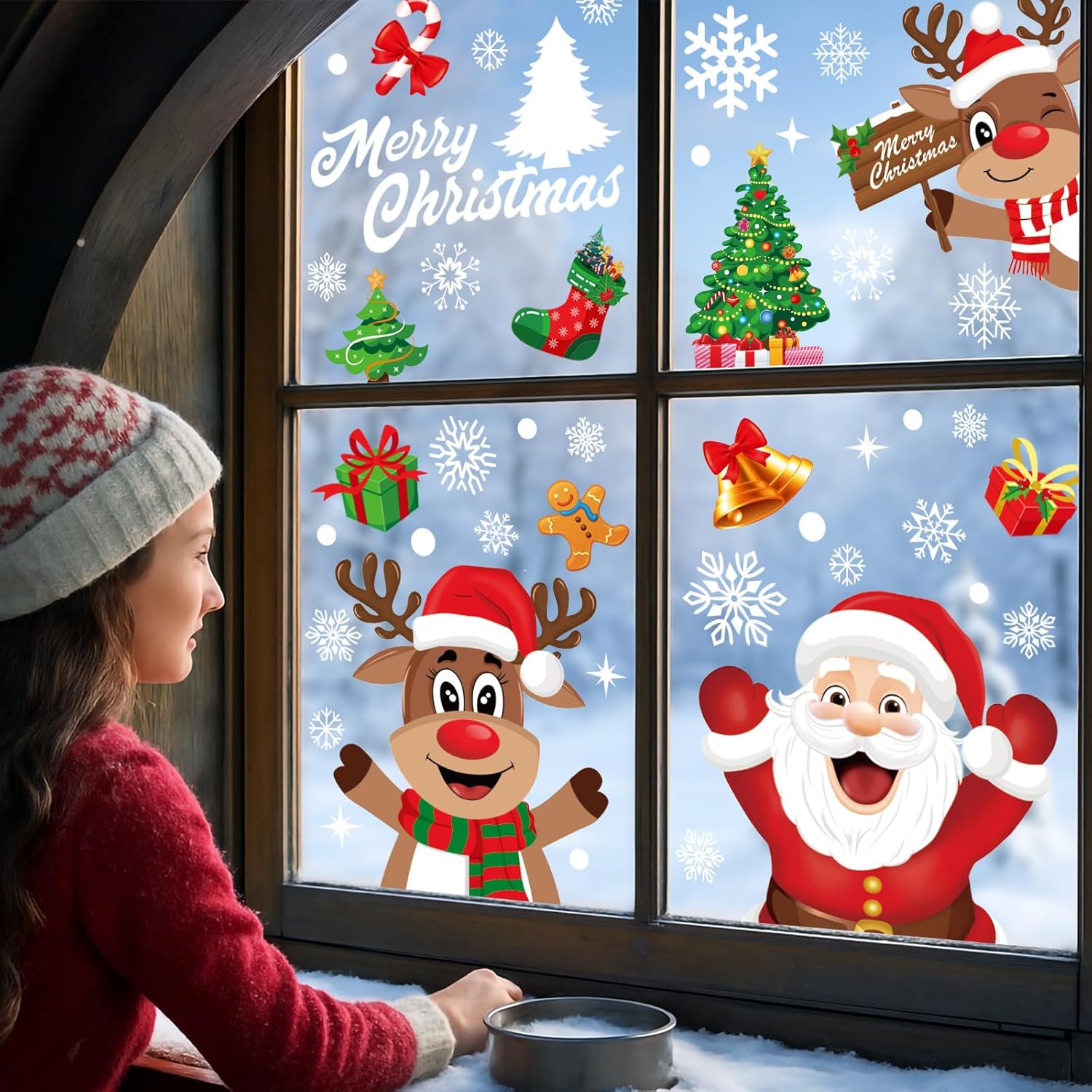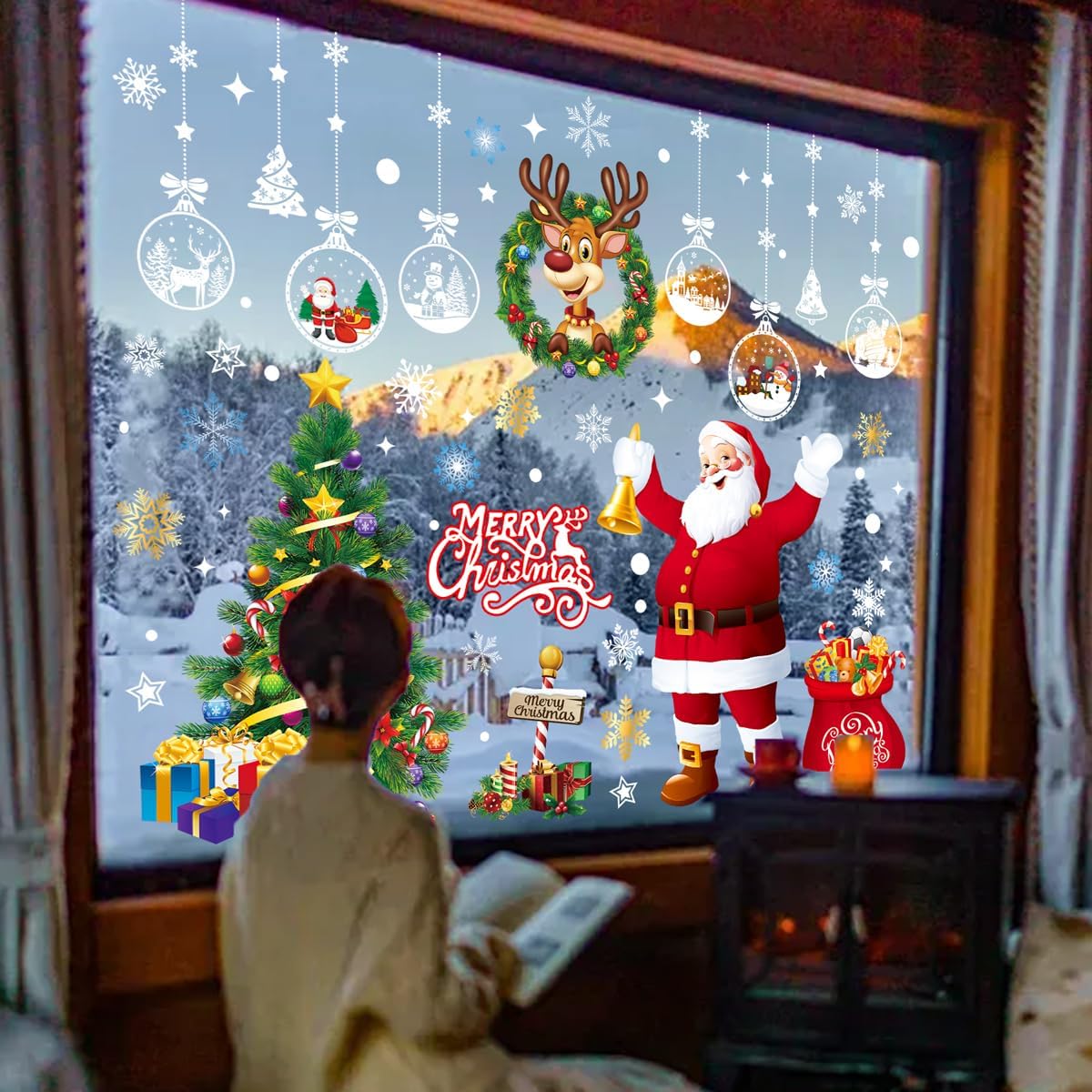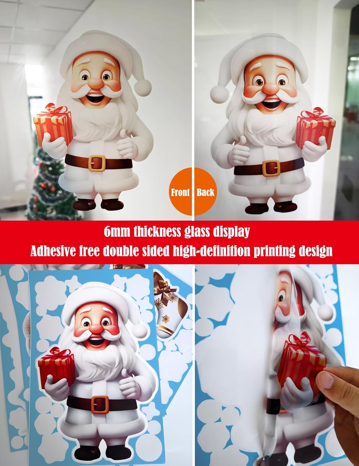 【Joyful Vivid Double-sided Printing】Our window Christmas stickers are made from high-quality PVC and feature bright, double sided Christmas window stickers printing for stunning visibility from both inside and outside. Day or night, these Xmas window stickers christmas scene bring festive cheer to your home, creating a joyful and colorful festive atmosphere on Christmas decorations for windows.