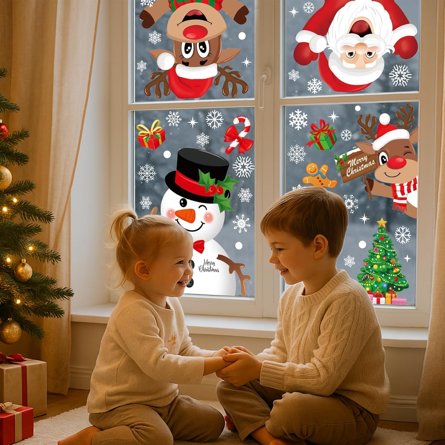 【Widely Applications】These adorable merry Christmas window stickers easily cling to any smooth surface—windows, mirrors, glass doors, and tiles. Christmas stickers for windows perfect for adding a joyful holiday touch to homes, kids' rooms, offices, cafes, and stores. Great for Christmas party decorations, birthdays, Xmas window decorations or brightening up any space, Christmas snowflake window stickers create a fun, festive atmosphere that everyone will love!