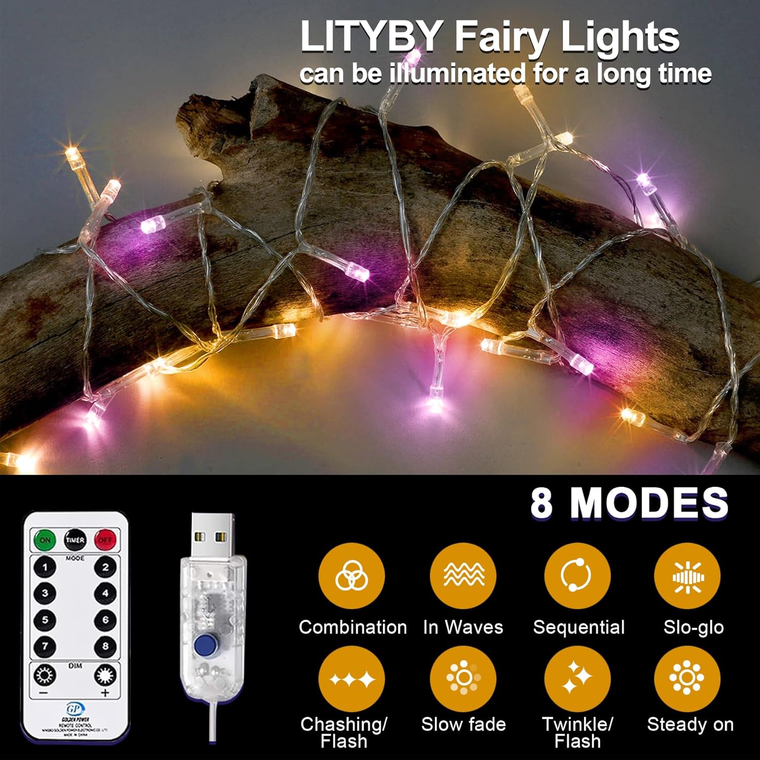 [Upgraded 120LED Fairy Lights]: Bright and gorgeous 120LED string lights to illuminate the space at night. With comfortable brightness,the fairytale LED lights are suitable for not only outdoor like winding on fences, stakes, windows, statues, trees but also indoor decor like being fixed or hung on walls, stairs, decks, roofs, etc, to create a pleasant atmosphere starry.