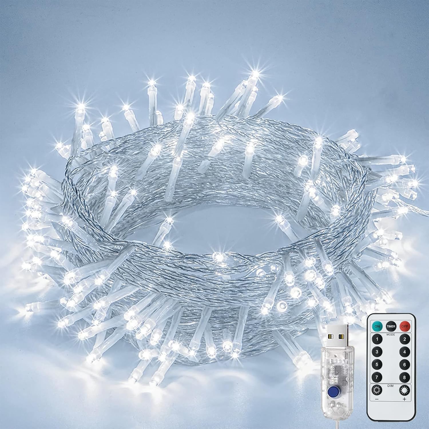 [High Quality and Easy install]:No assembly required, no tools required. With 15M flexible string wire, it can be flexibly bent into any shape around plants, patio, yard, fence, Christmas trees, or other decorations and furniture. Easily to decorate indoor or outdoor areas especially use as Christmas trees, to make the environment romantic and gentle without spending too much energy.